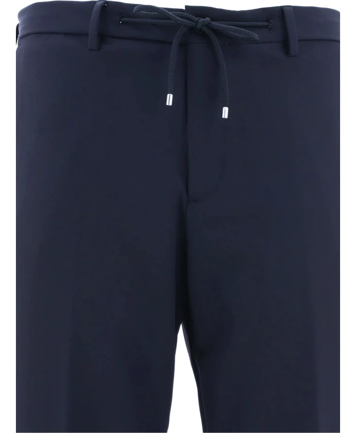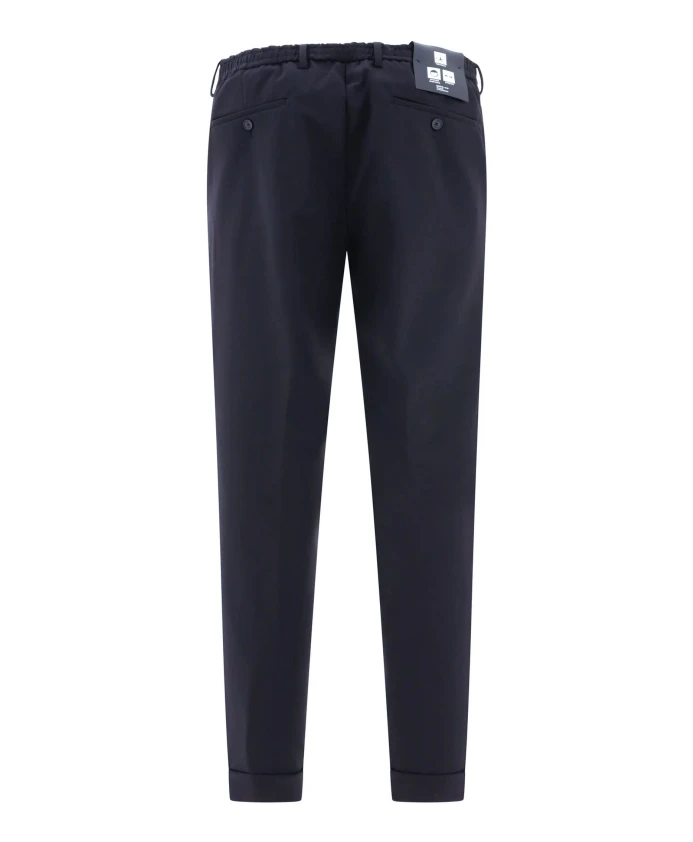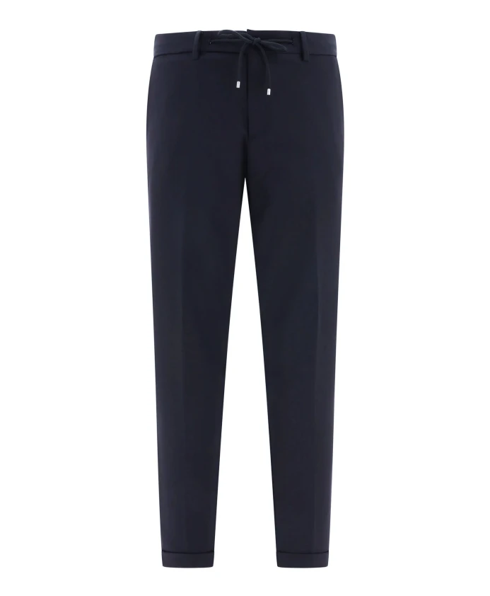 Брюки Briglia Montreals из синей натуральной шерсти, со шнурком, складками спереди, застежкой на пуговицу и молнию спереди, петлями для ремня, двумя боковыми прорезными карманами, двумя задними прорезными карманами и подвернутыми штанинами. Зауженный мужской крой.