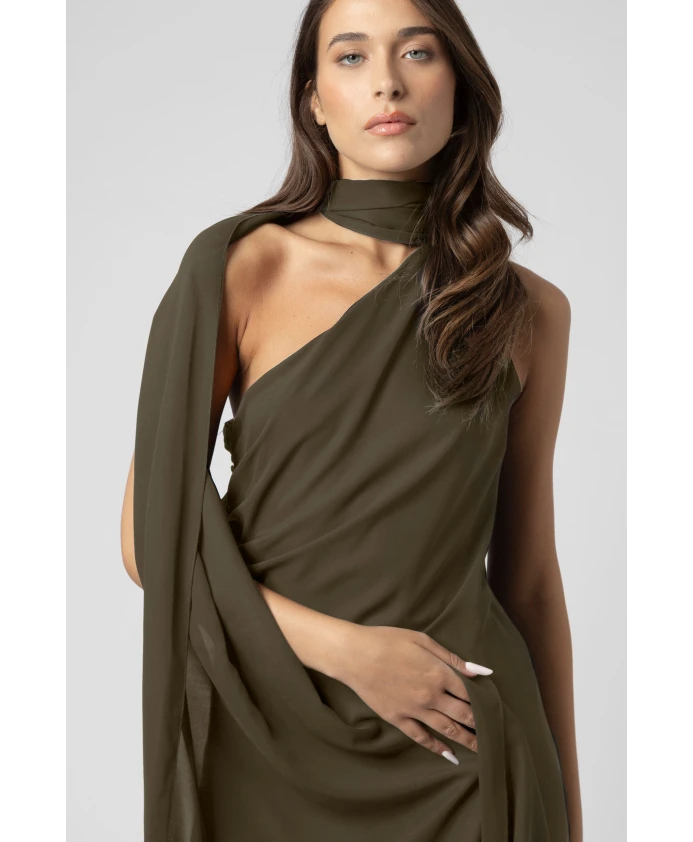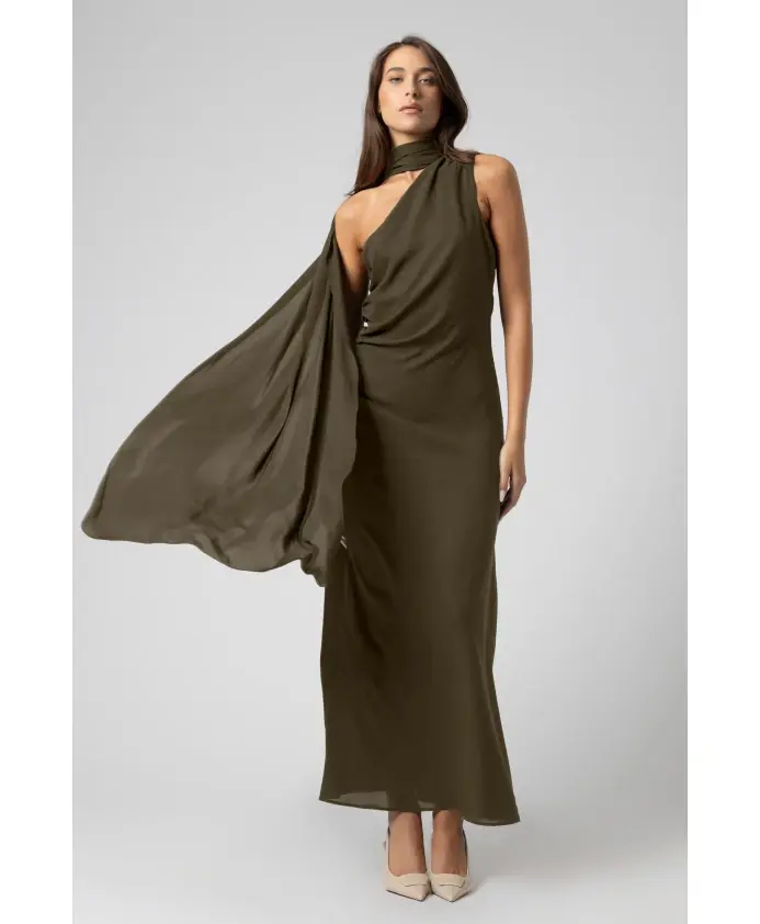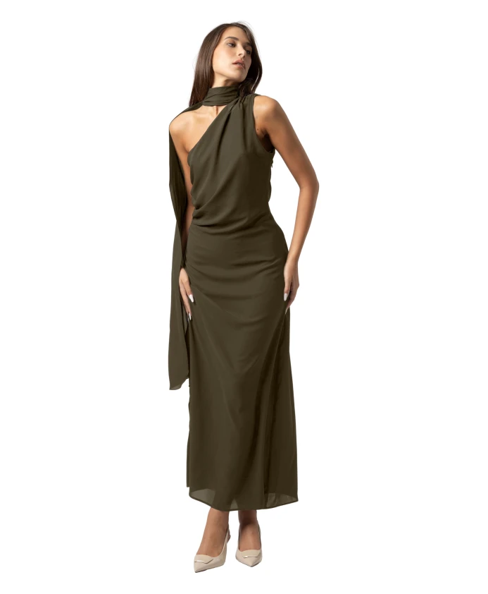 Классическое длинное вечернее платье от Kocca сочетает в себе облегающий силуэт и драпированную бретельку на одно плечо, создавая изысканный вечерний образ. Длина до пола и полупрозрачный подол обеспечивают плавное движение и утонченные детали для торжественных случаев. Ключевые особенности: Зеленый | Военно-зеленый | Бретелька на одно плечо, обхватывающая шею | Полупрозрачный подол | Длинный силуэт | Размеры и посадка: Рост модели 175 см, размер S/42 | Облегающий силуэт | Длинное платье
