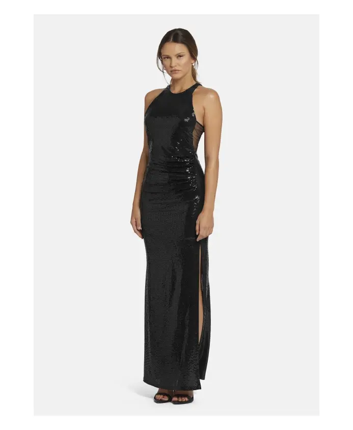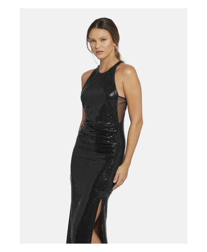 Вечернее платье LUCAWIA от Nicowa выполнено из трикотажной ткани с пайетками, закрепленными методом термофиксации, и имеет лестный крой, идеально подходящий для особых случаев. Сетчатая вставка создает красивый контраст с блестящими пайетками, формируя женственный, драпированный силуэт. Ключевые особенности: Черный | Трикотажная ткань с пайетками, закрепленными методом термофиксации | Сетчатая вставка | Драпированный силуэт | Размеры и посадка: Лестный крой |