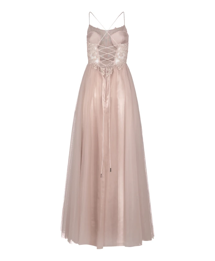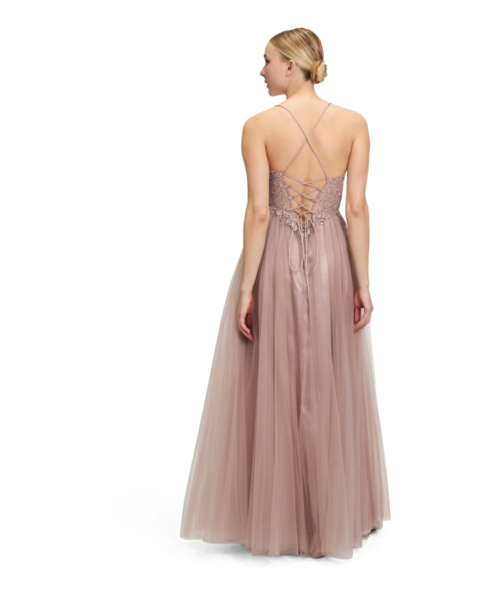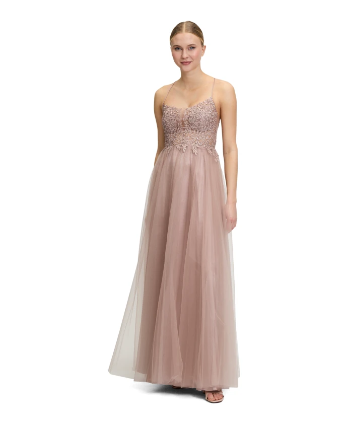 Это вечернее платье идеально подчеркнет вашу фигуру и продемонстрирует вашу элегантность. Открытая спина - настоящая изюминка, а нежная вышивка и сверкающие камни добавляют нотку роскоши. Лестная смесь тканей и приталенный крой подчеркнут ваш силуэт. Регулируемые тонкие бретельки обеспечивают индивидуальную посадку. Благодаря элегантному однотонному дизайну это платье без рукавов идеально подходит для незабываемых вечеров.