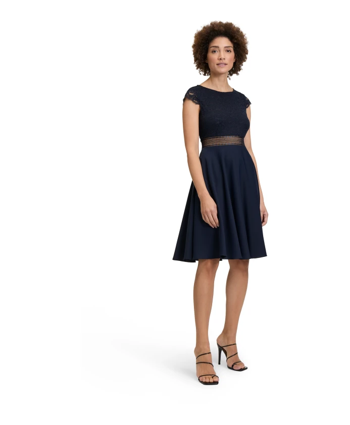Кружевное вечернее платье, элегантный стиль. Vera Mont, синий
