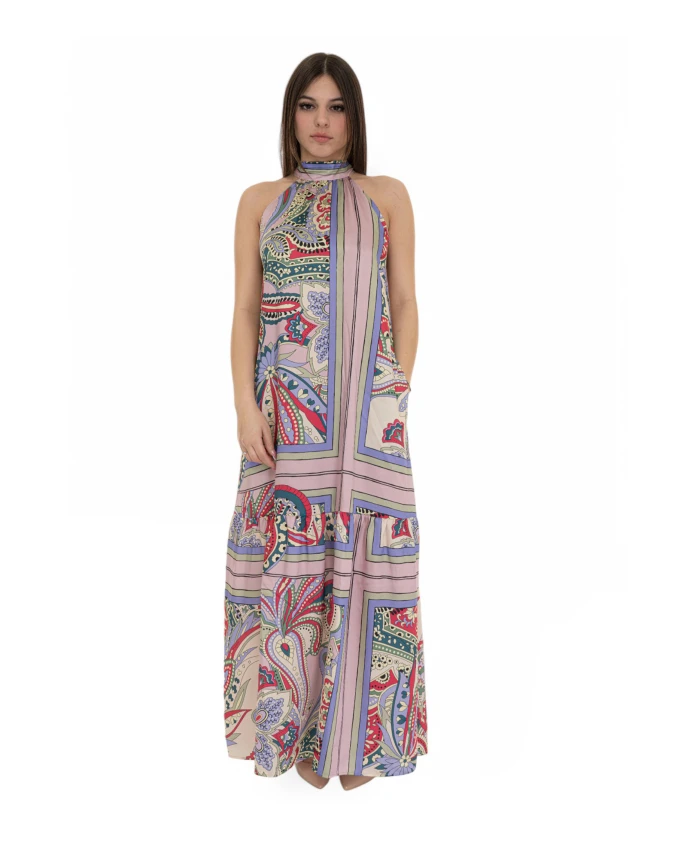 Добавьте элегантности своему вечернему образу с помощью этого длинного платья от Liu Jo, украшенного потрясающим принтом в виде платка, воротником-бантом и язычком с логотипом. Изготовленное из 100% полиэстера, это платье идеально подходит для особых случаев.