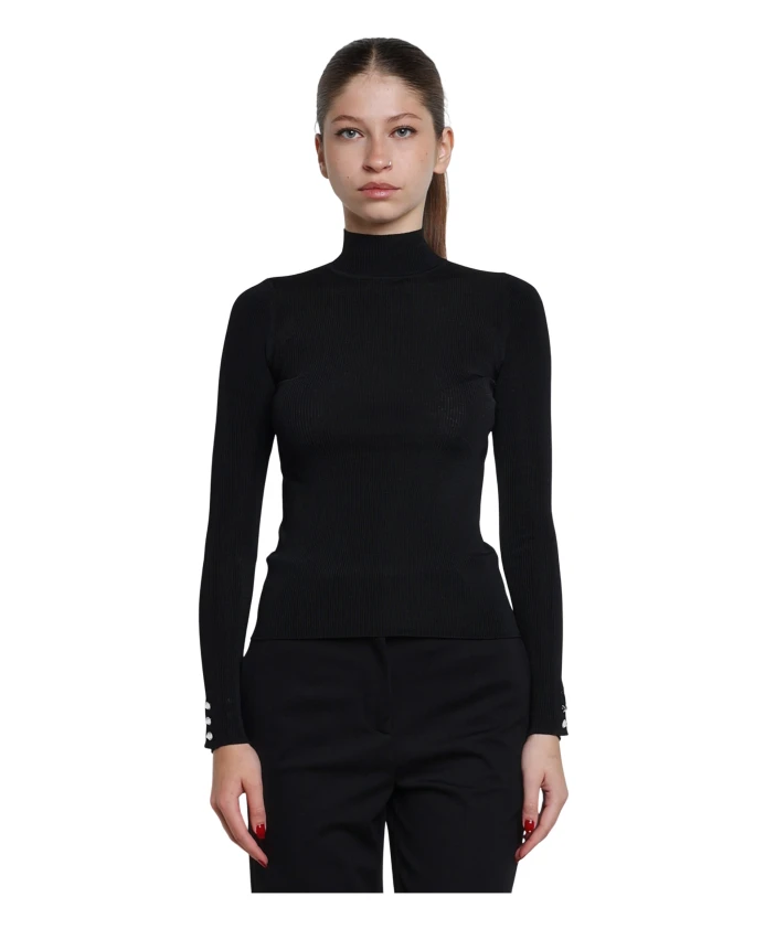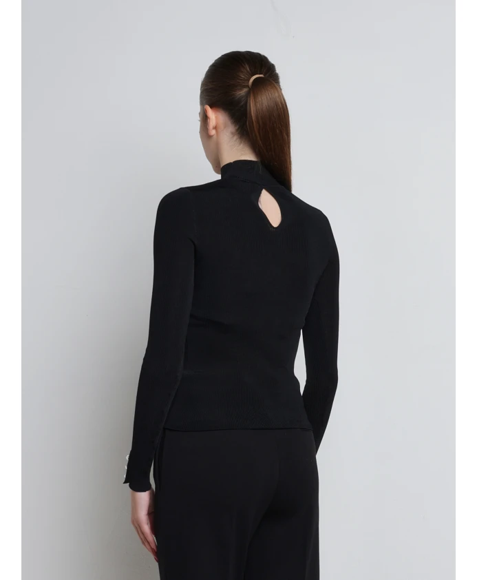 Свитер-поло Pennyblack Celebre с высоким воротником сочетает в себе изысканный ребристый крой и эффектный вырез на спине, создавая утонченный повседневный образ. Он имеет облегающий силуэт и украшен манжетами с драгоценными камнями, что придает ему утонченный, элегантный вид. Основные характеристики: Черный | Черный | Вискоза | Воротник-стойка | Ребристый крой | Вырез на спине | Манжеты с драгоценными камнями | Длинные рукава | Размеры и посадка: Облегающий крой | Состав материала и уход: 75% вискоза, 25% полиамид | Ручная стирка в холодной воде (макс. 40°C); не отбеливать; не сушить в сушильной машине; сушить в горизонтальном положении в тени; гладить при низкой температуре; не подвергать химчистке; не подвергать влажной чистке.