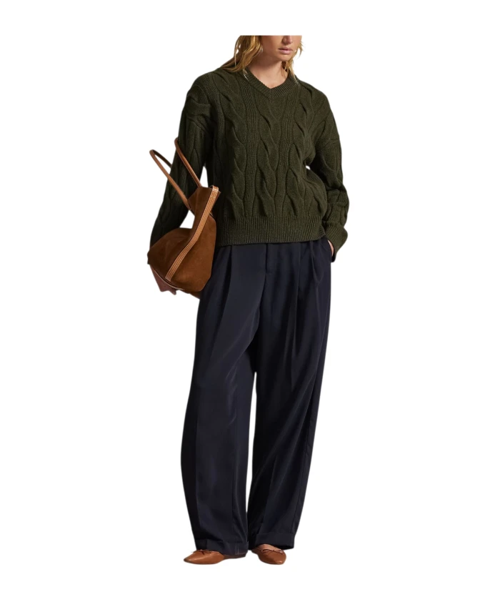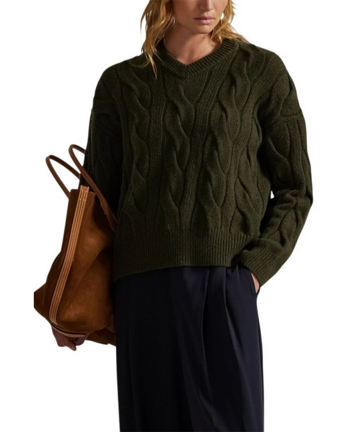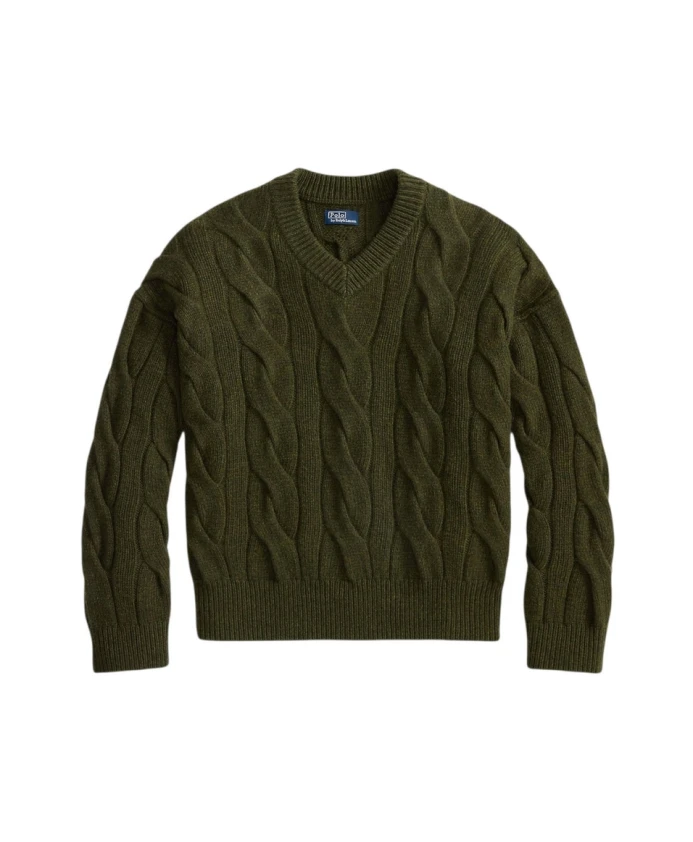 Свитер Ralph Lauren с V-образным вырезом, изготовленный из итальянской шерсти и кашемира, с объемным косичным узором для создания свободного силуэта длиной до бедра. Идеально подходит в качестве универсального слоя для повседневных и элегантных образов. Ключевые особенности: Зеленый | Военный стиль | Шерсть и кашемир | Свитер | V-образный вырез | Косичный узор | Ребристые манжеты | Ребристый низ | Спущенные плечи | Длинные рукава | Размеры и посадка: Длина изделия: 60 см (средний размер; измерено от самой высокой точки плеча) | Длина рукава: 47 см (средний размер; варьируется примерно на 1,3 см между размерами) | Свободный крой | Длина до бедер | Состав и уход: 80% шерсть | 20% кашемир | Ручная стирка или химчистка.