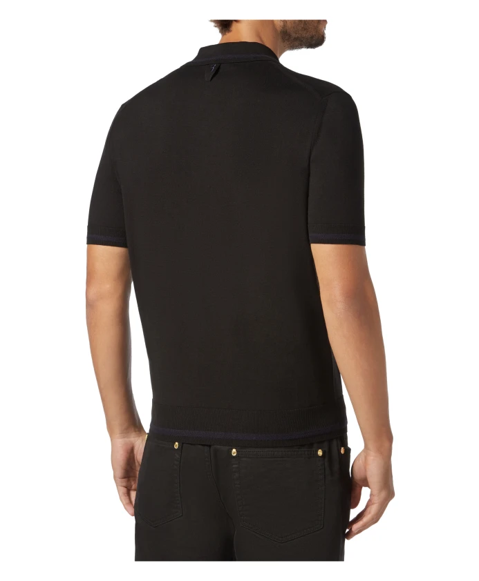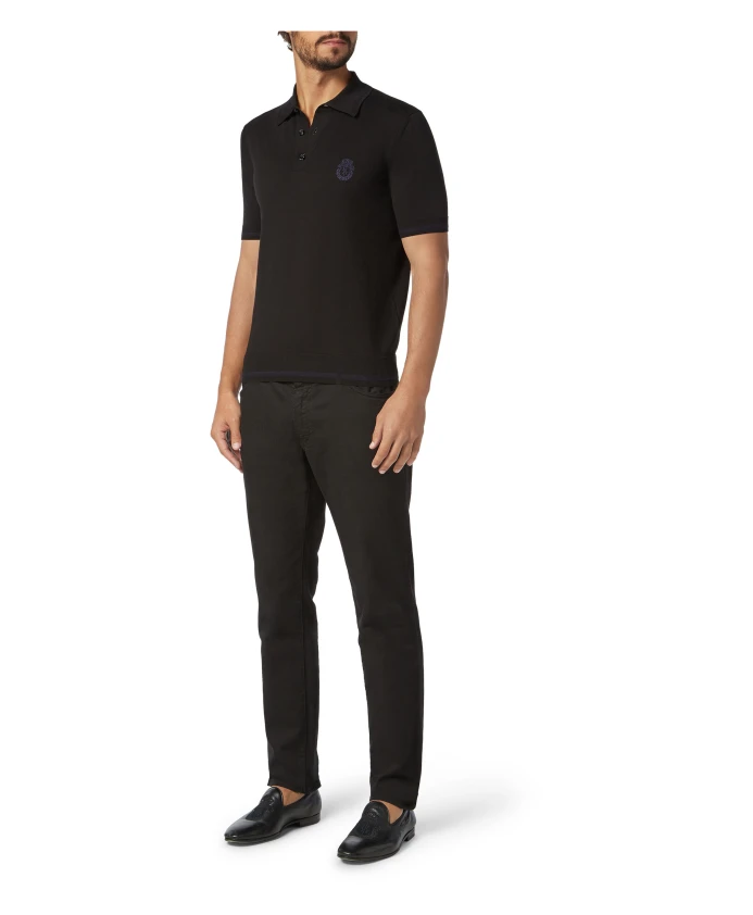 Поло-рубашка Billionaire Pullover SS Crest с короткими рукавами, изготовленная из высококачественного хлопка, отличается вышитым гербом бренда и застежкой на перламутровые пуговицы. Она сочетает в себе изысканные детали и классический силуэт поло, создавая элегантный повседневный образ. Ключевые особенности: Черный | Хлопок | Дышащая ткань | Мягкая на ощупь | Перламутровые пуговицы с логотипом на воротнике | Петля для подвешивания с вышитой монограммой на кокетке | Воротник-поло | Короткие рукава | Вышитый герб на левой стороне груди | Тканый ребристый воротник, манжеты и нижний край с контрастными полосами | Зауженные проймы | Состав и уход: 100% хлопок | 100% перламутр