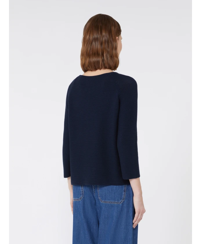 Хлопковый пуловер с вырезом-лодочкой и рукавами реглан. Max Mara, синий