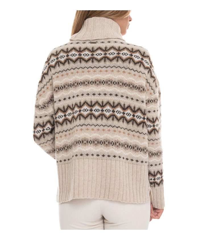 Пуловер Barbour Helen сочетает в себе классический узор Fair Isle и свободный воротник-стойку для создания уютных повседневных образов. Благодаря шерстяной ткани, ребристым манжетам и нижнему краю, это универсальная классика от Barbour для холодной погоды. Основные характеристики: Бежевый | Шерсть | Стиль пуловера | Узор Fair Isle | Свободный воротник-стойка | Ребристые манжеты и нижний край | Спущенные плечи | Узкая металлическая полоска на задней части воротника | Размеры и посадка: Длина по спинке: 62 см | Свободный крой | Спущенные плечи | Состав и уход: 80% шерсть | 20% полиамид | Ручная стирка при 30°C.