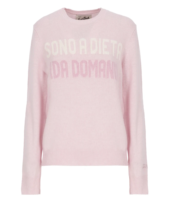 Свитер Saint Barth New Queen Pullover - это вязаный свитер с круглым вырезом и вышитым логотипом «Sono A Dieta» на передней части. Мягкая смесь шерсти и вискозы, а также ребристые манжеты и нижний край делают его удобным выбором для повседневного многослойного образа. Ключевые особенности: Розовый | Шерсть | Круглый вырез | Длинные рукава | Ребристый воротник, манжеты и нижний край | Вышитый логотип «Sono A Dieta» на передней части | Размеры и посадка: Рост модели: 179 см (размер S) | Стандартный крой | Состав и уход: 20% кашемир | 35% шерсть | 30% вискоза | 15% полиамид
