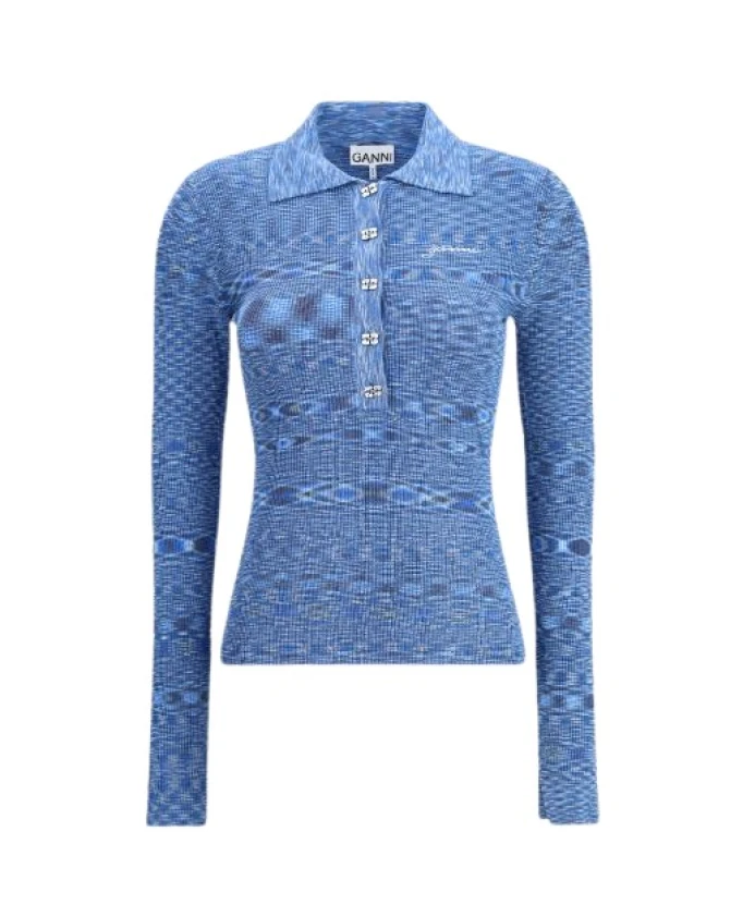 Пуловер-Поло с градиентной окраской Ganni, синий