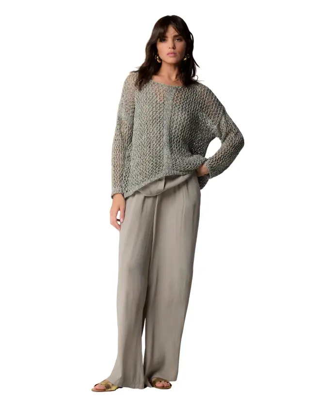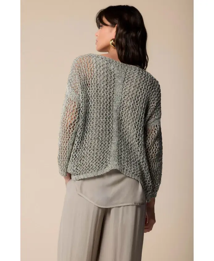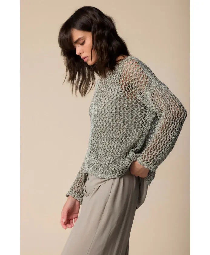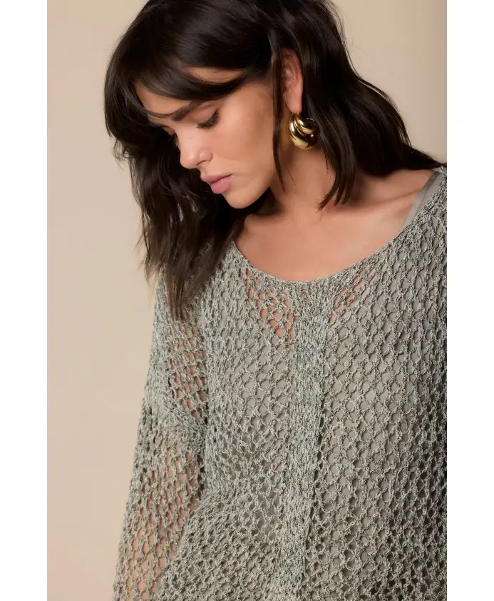 Свитер Kocca MAURANA из коллекции Pure Verve - это пуловер из прозрачной сетки, созданный для легкого многослойного ношения и отличающийся характерным ажурным узором. Он имеет широкую сетчатую структуру и ребристую отделку на воротнике и манжетах. Ключевые особенности: Серый | Светло-серый меланж | Хлопок | Прозрачная сетка | Пуловер (без пуговиц) | Круглый вырез | Длинные рукава | Широкая сетчатая структура | Детали по центру | Ребристый воротник и манжеты | Укороченная длина | Состав и уход: 41% хлопок | 36% акрил | 18% полиамид | 5% полиэстер