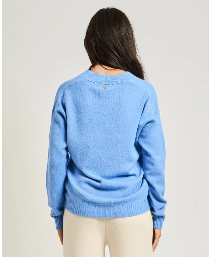 Свитер Manila Grace с V-образным вырезом сочетает в себе мягкую вискозную ткань и свободный силуэт, что позволяет легко создавать многослойные образы на каждый день. Изящные детали, такие как ребристые манжеты и нижний край, а также логотип на спине, придают изделию утонченный вид. Основные характеристики: Синий | Светло-синий | Вискоза | V-образный вырез | Длинные рукава | Ребристые манжеты | Логотип на спине | Размеры и посадка: Свободный крой | Модель носит размер S, рост 1,65 м. | Состав и уход: 50% вискоза | 27% полиэстер | 23% полиамид