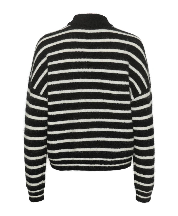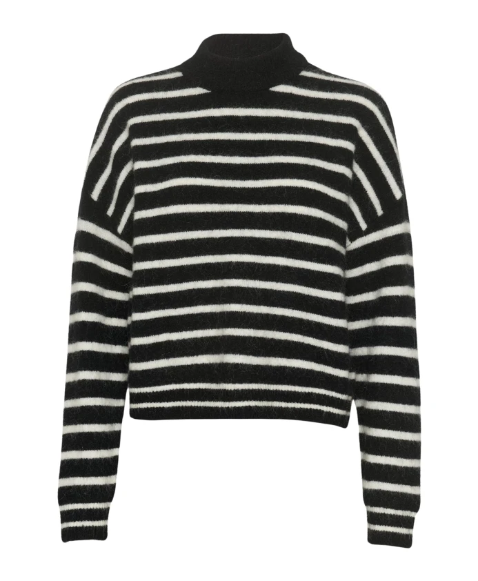 Свитер Gestuz DebbieGZ - это вязаный свитер с высоким воротником и свободным силуэтом, созданный для удобного многослойного ношения в прохладную погоду. Ключевые особенности: Черный | Белые полосы | Мохер | Высокий воротник | Длинные рукава | Свободный силуэт | Полосатый узор | Мягкая текстура | Размеры и посадка: Свободный крой | Состав ткани и уход: 34% мохер | 34% ульд | 28% полиамид | 4% эластан | Ручная стирка или химчистка. Не сушить в сушильной машине. Не отбеливать. Не гладить.