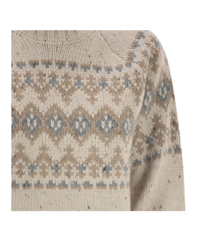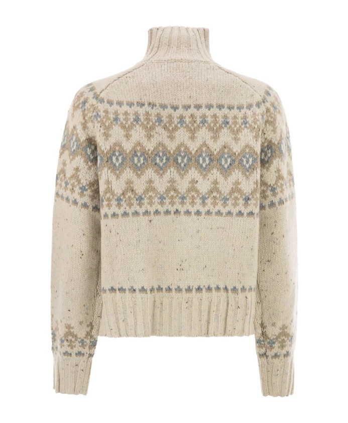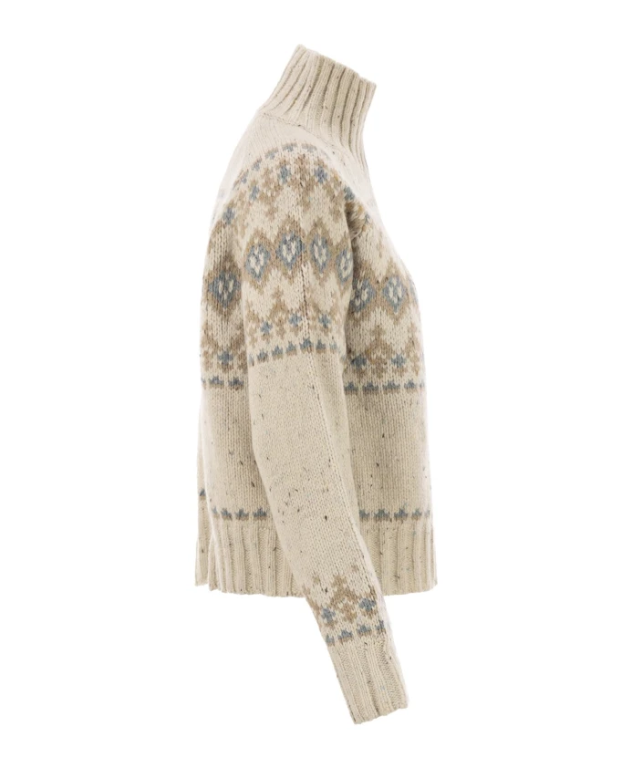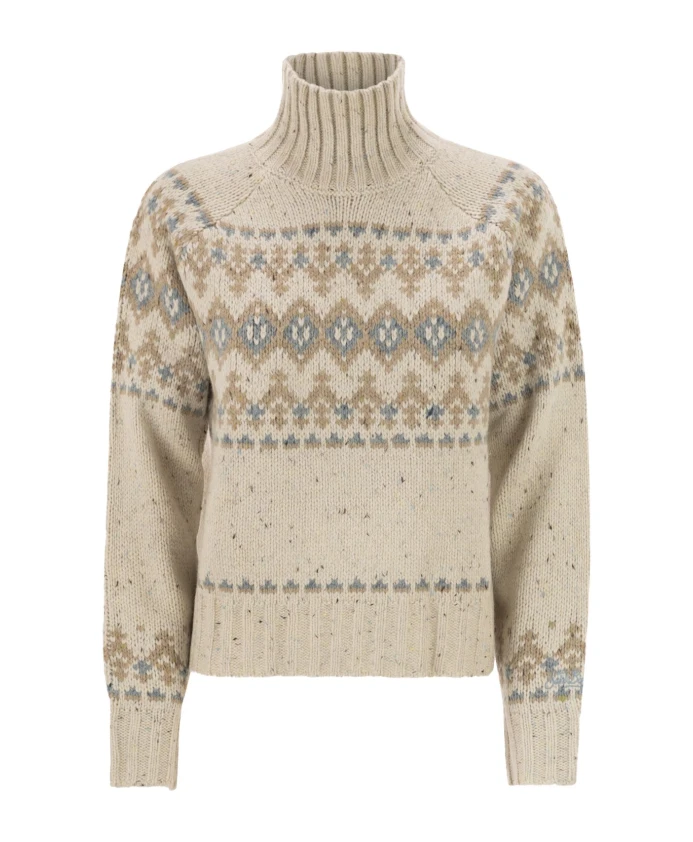 Свитер MC2 Saint Barth Myra Donegal сочетает в себе текстуру пряжи Donegal с жаккардовым узором Fair Isle, создавая теплую, роскошную вязаную вещь, идеально подходящую для повседневного многослойного образа. Ключевые особенности: Многоцветный | Бежевый | Смесь шерсти | Теплый | Воротник-стойка | Жаккардовый узор Fair Isle | Длинные рукава реглан | Ребристый воротник, манжеты и нижний край | Лицевая гладь | Размер и посадка: Толстая вязка | Состав ткани и уход: 50% шерсть | 50% акрил