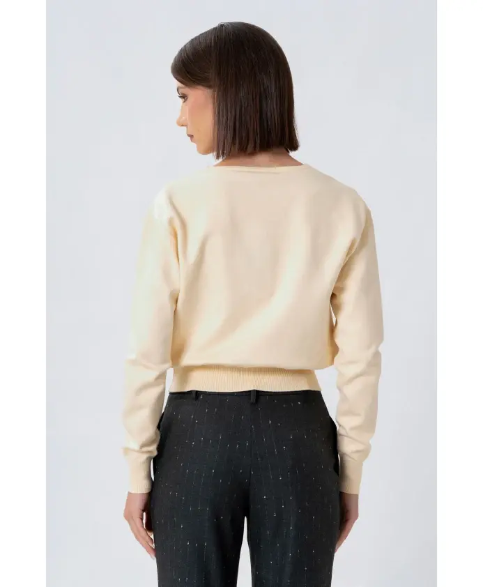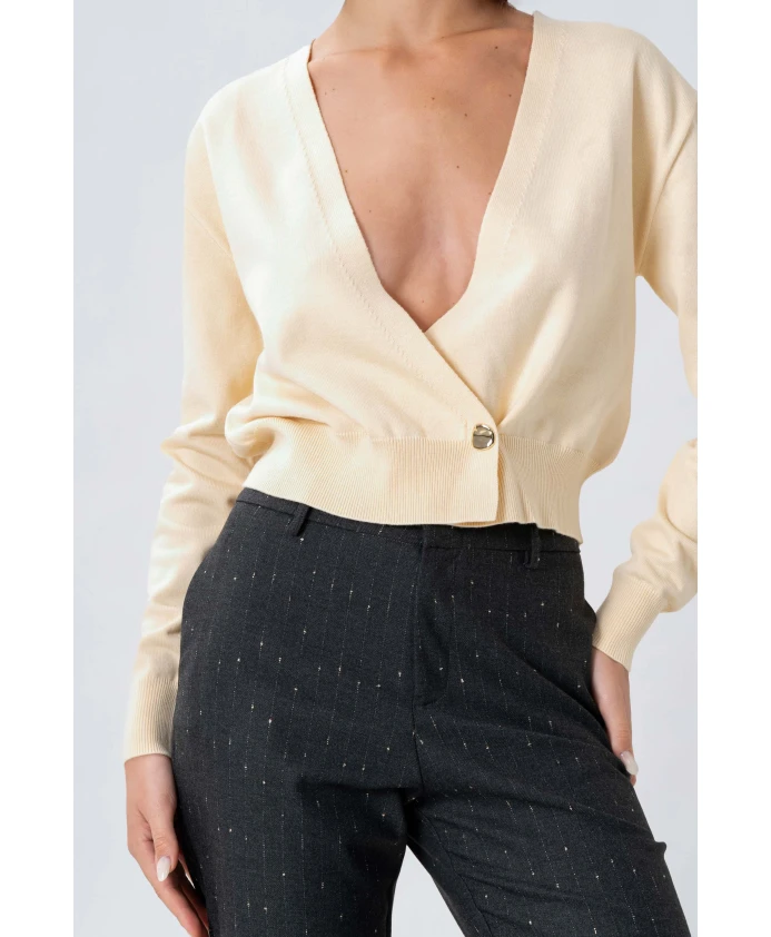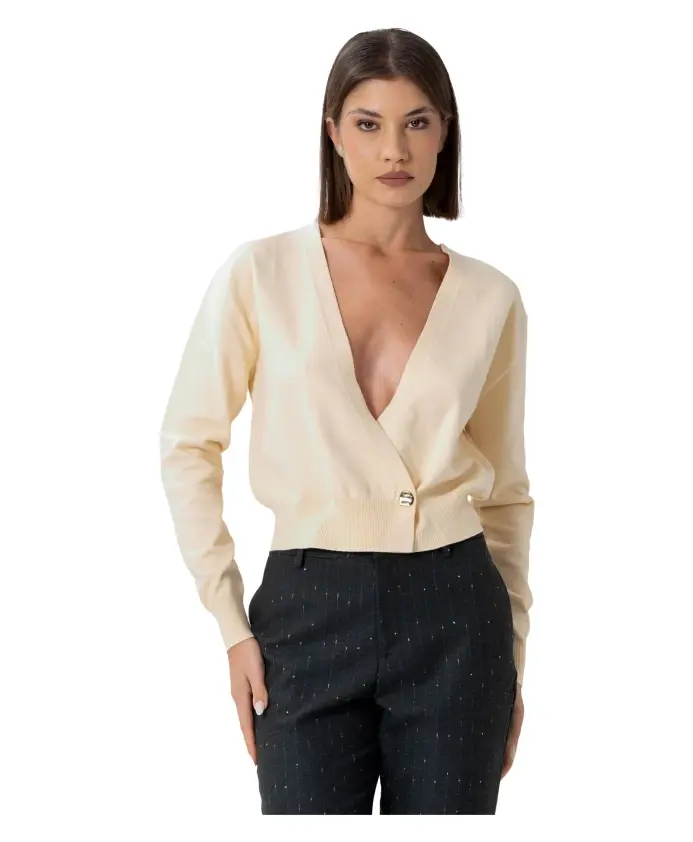 Джемпер Kocca KASIAX - это кардиган с приспущенными плечами, глубоким V-образным вырезом и одной декоративной пуговицей на талии. Он идеально подходит для многослойных образов, как в повседневном, так и в элегантном стиле. Ключевые особенности: Бежевый | Пастельно-желтый | Одна декоративная пуговица на талии | Ребристый низ | Глубокий приспущенный V-образный вырез | Длинные рукава | Силуэт кардигана | Двойная строчка по низу | Размеры и посадка: Рост модели 175 см, размер S/42