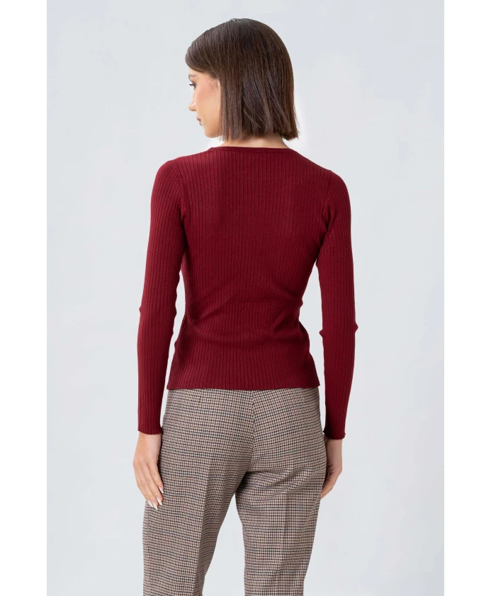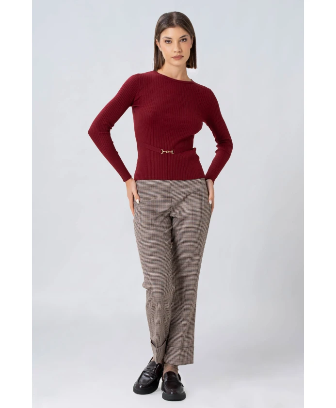 Свитер Kocca M/L KARIMAX - это пуловер с длинными рукавами и легкой ребристой текстурой, с интегрированным поясом в тон и металлической застежкой-поворотником, созданный для элегантного повседневного образа. Ключевые особенности: Красный | Бордовый | Вискоза | Интегрированный пояс в тон с металлической застежкой-поворотником | Круглый вырез | Длинные рукава | Легкая ребристая текстура | Двойная прострочка и окантовка краев | Состав ткани и уход: 67% вискоза | 33% полиэстер