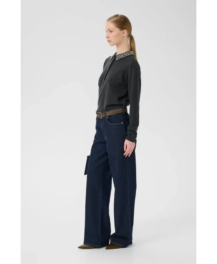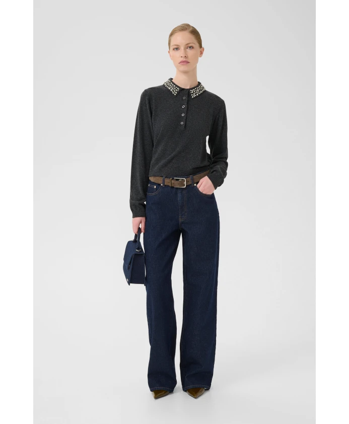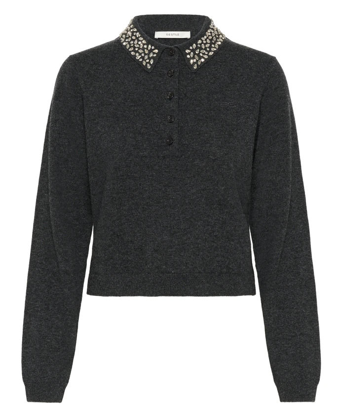 Свитер-поло Gestuz Gzmanzi Deco - это вязаный свитер, сочетающий в себе повседневный комфорт и праздничные детали. Он имеет классический воротник-поло, украшенный сверкающими кристаллами, что придает ему винтажный гламурный вид. Ключевые характеристики: Серый | Размер | Шерсть | Застежка на пуговицы | Воротник-поло | Воротник, украшенный кристаллами | Вязаная конструкция | Размеры и посадка: Укороченная длина | Прямой крой | Состав и уход: 100% шерсть
