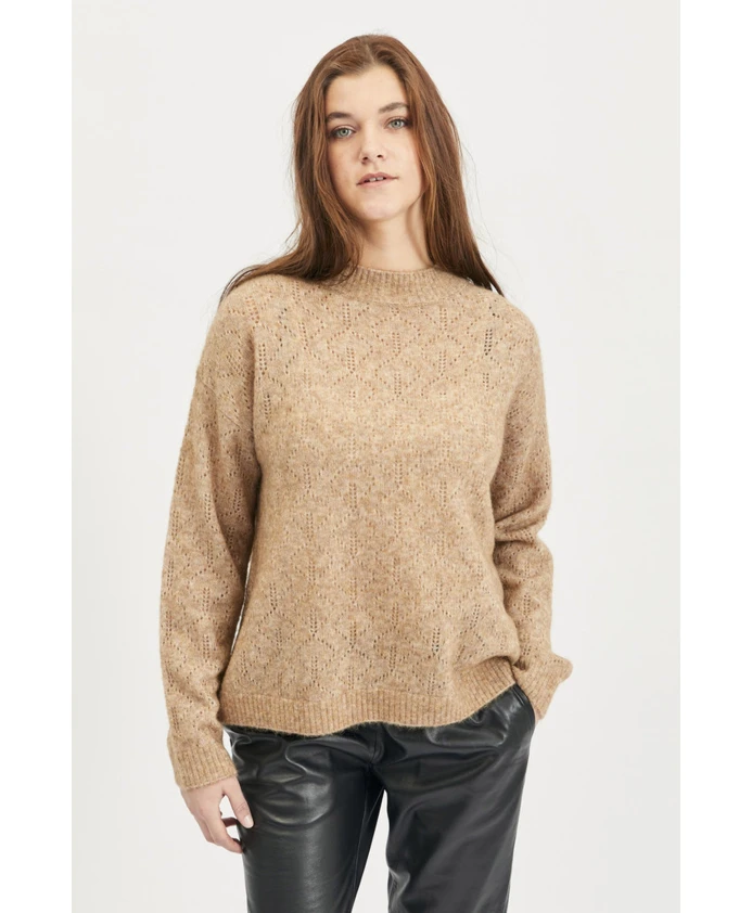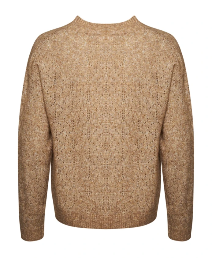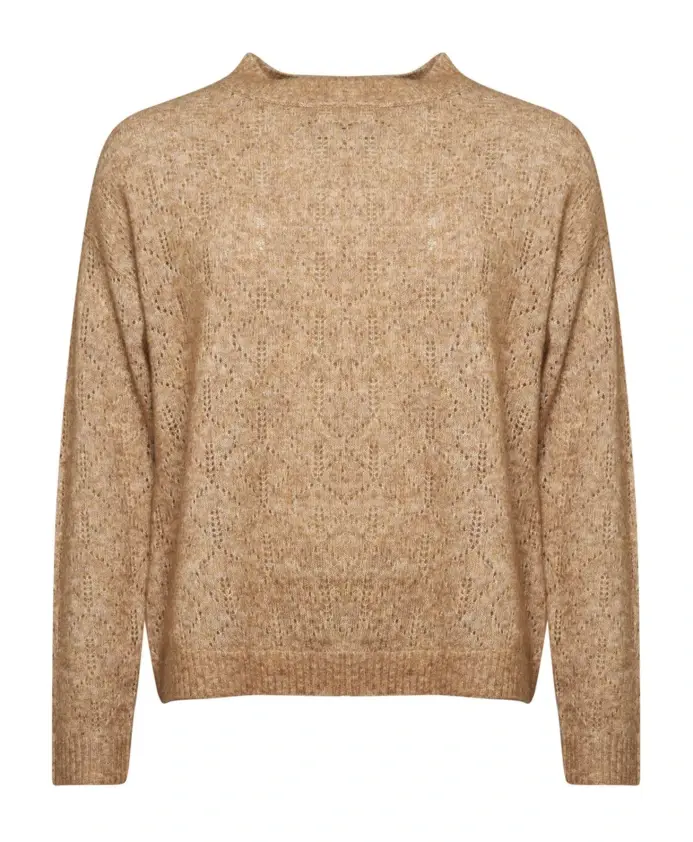 Пуловер Lind Albi - это вязаный свитер из мягкой, эксклюзивной смеси шерсти и мохера, украшенный кружевным узором и имеющий круглый вырез для элегантного осеннего образа. Ключевые особенности: Коричневый | Верблюжий | Смесь шерсти | Круглый вырез | Длинные рукава | Кружевной узор | Однотонный дизайн | Размеры и посадка: Длина по спинке: 60 см | Классический крой | Состав и уход: 33% шерсть, 33% мохер, 28% нейлон, 6% эластан