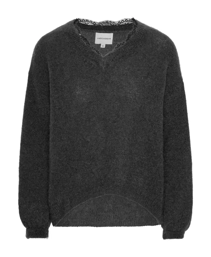 Представляем свитер Esme от AMERICANDREAMS - утонченную версию модели Silja, отличающуюся непревзойденной мягкостью и стилем благодаря изящным кружевным деталям. Ключевые характеристики: Антрацитово-серый | Кид-мохер | Шерсть | Полиамид | Эластан | V-образный вырез | Кружевные детали | Размер и посадка: Стандартный крой | Состав и уход: 34% кид-мохер | 34% шерсть | 29% полиамид | 3% эластан | Не указано