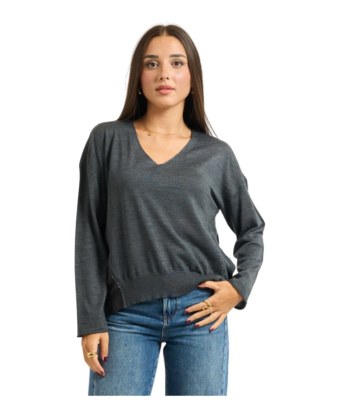 Пуловер с V-образным вырезом Alessia Santi, серый