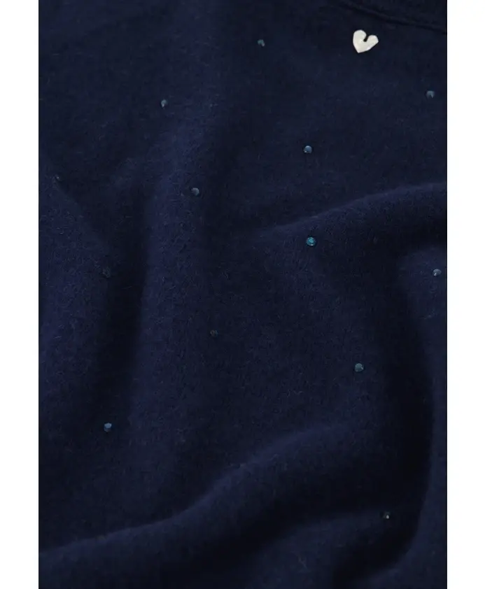 Этот темно-синий свитер со стразами добавит игривого блеска вашему зимнему гардеробу. Связанный из 100% шерсти, он мягкий, дышащий и естественно теплый, изготовлен из шерсти, полученной из ответственных источников. Нежные стразы придают классическому крою особую изюминку - идеально подходит для любого случая.