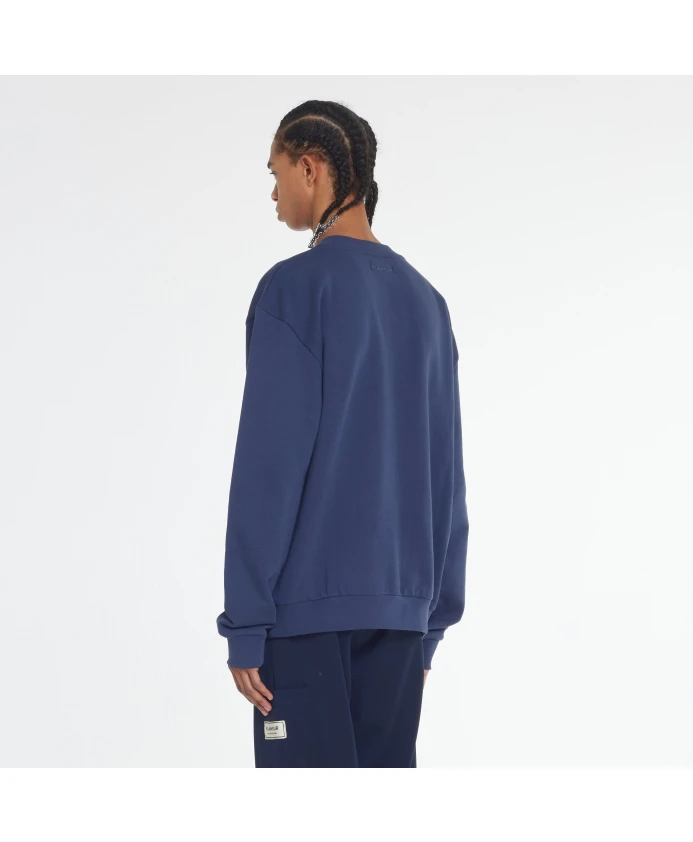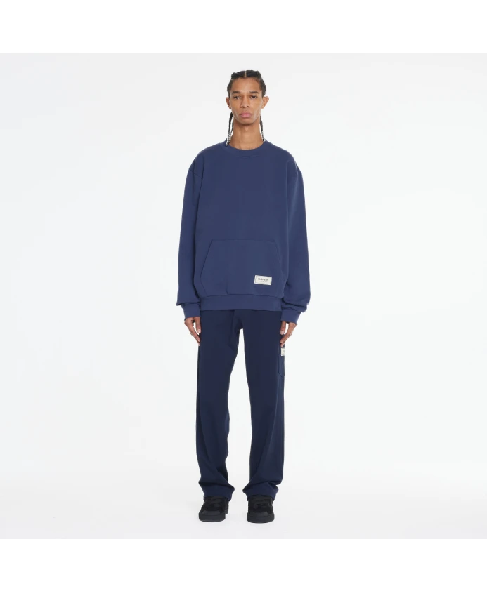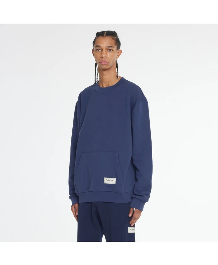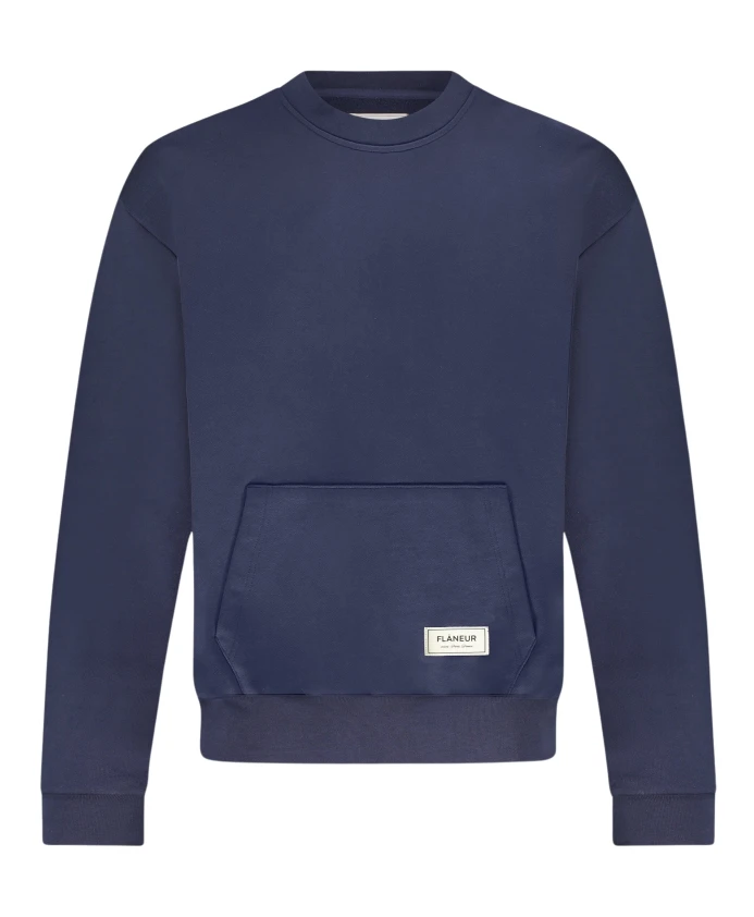 Подчеркните свой повседневный стиль с помощью свитера FLÚNEUR Atelier темно-синего цвета. Этот свитер имеет карман-кенгуру и украшен контрастной нашивкой FlÚNEUR Atelier. Изготовлен из 100% хлопка в Турции. Доступен в размере L. Идеально подходит для современного мужчины.