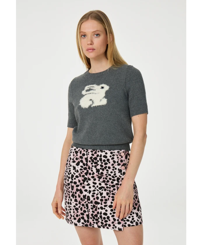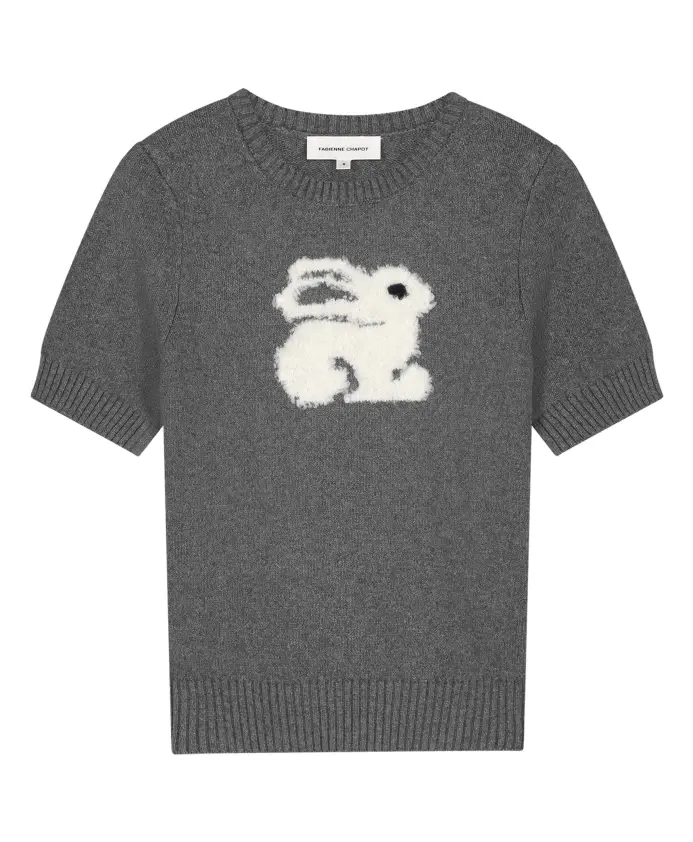 Этот серый свитер с короткими рукавами и милым принтом в виде зайчиков на передней части изготовлен преимущественно из органического хлопка, что делает его исключительно удобным в носке. Сочетайте его с любимыми джинсами для создания повседневного, игривого образа.