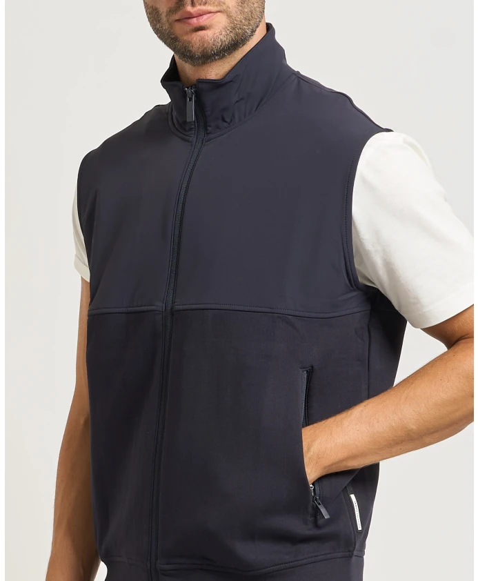 Подчеркните свой стиль с помощью этого мужского жилета Armani Exchange на молнии с высоким воротником, боковыми карманами на молнии и контрастным дизайном с использованием технической ткани в верхней части и на воротнике. Рост модели 185 см, размер M.