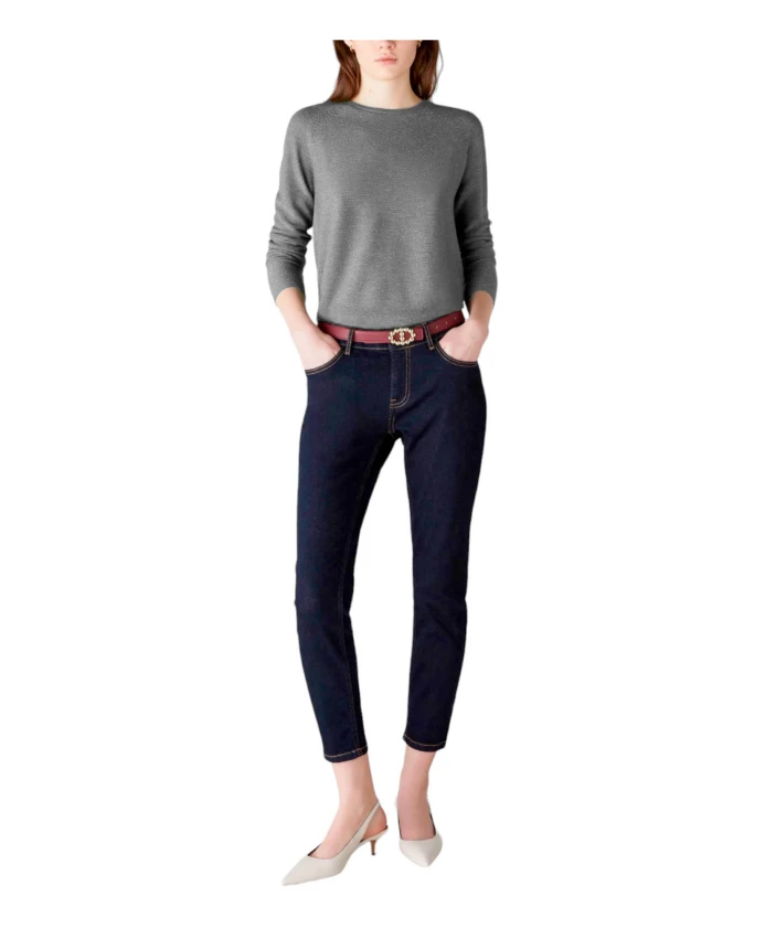 Женский трикотаж Emme Marella Regular Fit с круглым вырезом, изготовленный из 53% полиэстера, 19% полиамида, 19% акрила, 5% шерсти и 4% металлизированного волокна. Состав ткани: хлопок.