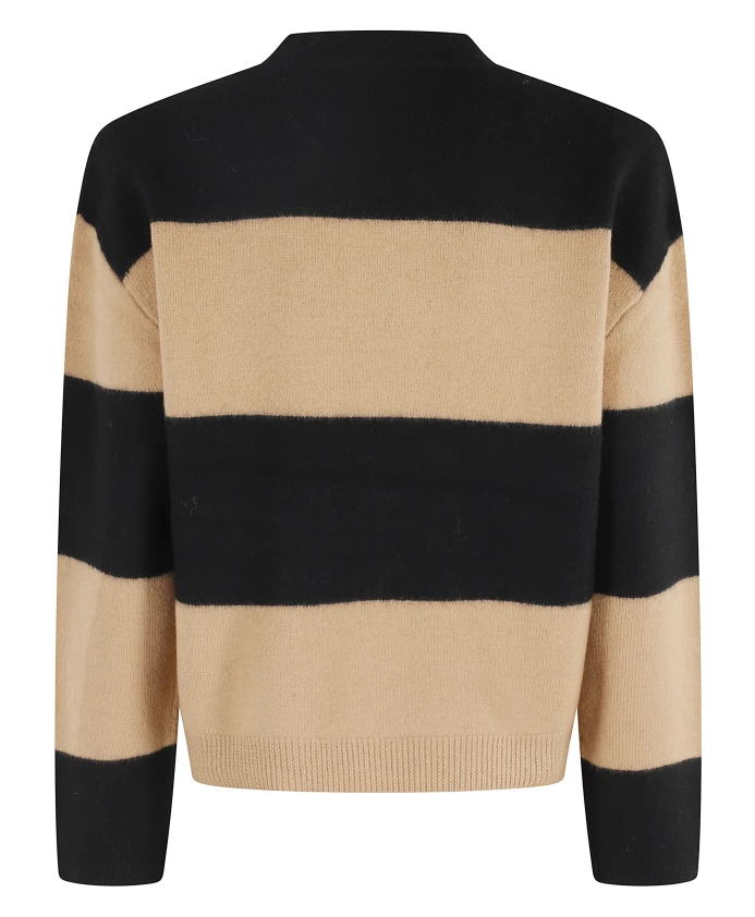 Обновите свой гардероб с помощью этого пуловера APC Penny в черно-бежевом цвете. Модель украшена крупными полосками, имеет круглый вырез, длинные рукава и вышитый логотип внизу.