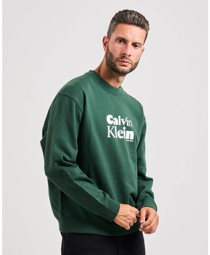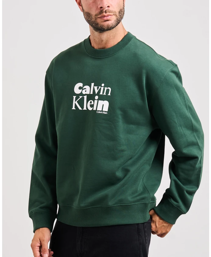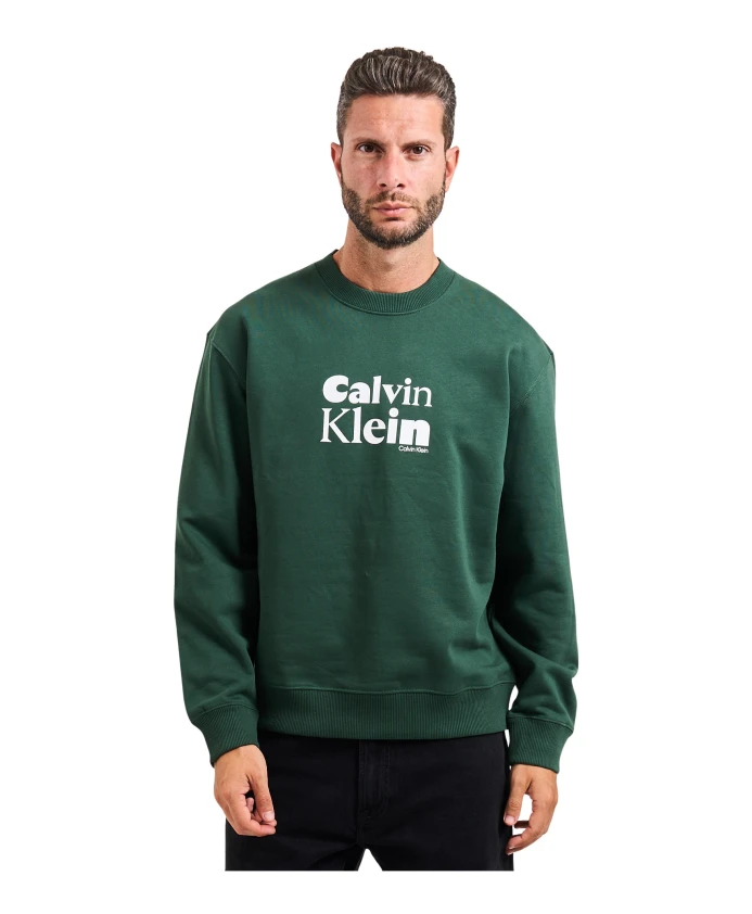 Мужская толстовка Calvin Klein без капюшона, с логотипом, выполненным курсивным шрифтом, на передней части, из хлопка.