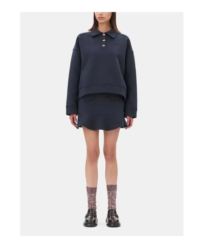 Пуловер из плотного флиса со спущенными плечами Ganni, синий