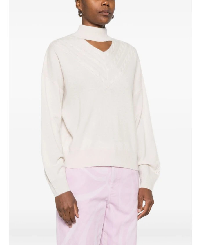 Бежевый свитер Blugirl с высоким воротником, вырезами и длинными рукавами для женщин.