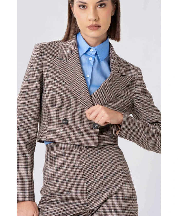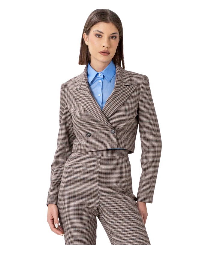 Короткий, элегантный клетчатый жакет Kocca, коричневый