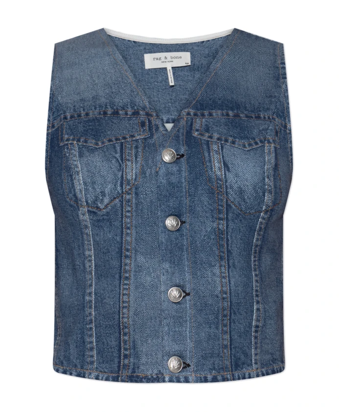 Жилет из ткани, похожей на джинсовую. Rag & Bone, синий