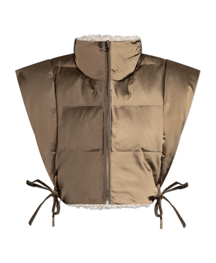 Жилет Marant Étoile Hoodiali сочетает в себе атласную внешнюю ткань и подкладку из искусственной овчины, создавая двусторонний, современный вариант парижского многослойного образа. Структурированные плечи и геометрический крой создают эффектный, современный силуэт. Ключевые особенности: Цвет: Хаки | Нейлон | Двусторонний дизайн | Застежка-молния по всей длине спереди | Регулируемые боковые завязки | Геометрический крой | Структурированные отвороты на плечах | Укороченный силуэт | Удлиненная спинка | Глянцевая атласная отделка | Плотная подкладка из искусственной овчины | Размеры и посадка: Рост: 177 см | Обхват груди: 83 см | Обхват талии: 61 см | Обхват бедер: 89 см | Модель носит размер: 36 | Укороченный, свободный крой | Состав материала и уход: Верх: 100% полиамид | Искусственная овчина: 80% модакрил, 20% акрил | Наполнитель: 100% полиэстер | Рекомендуется химчистка. Машинная стирка в щадящем режиме при 30°C, вывернув наизнанку.