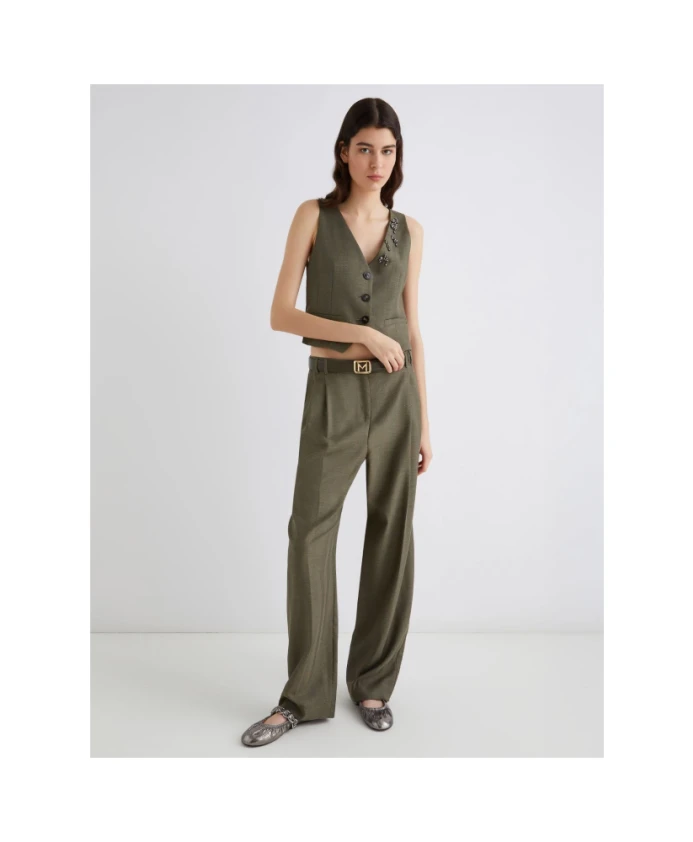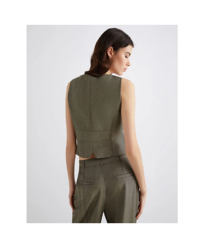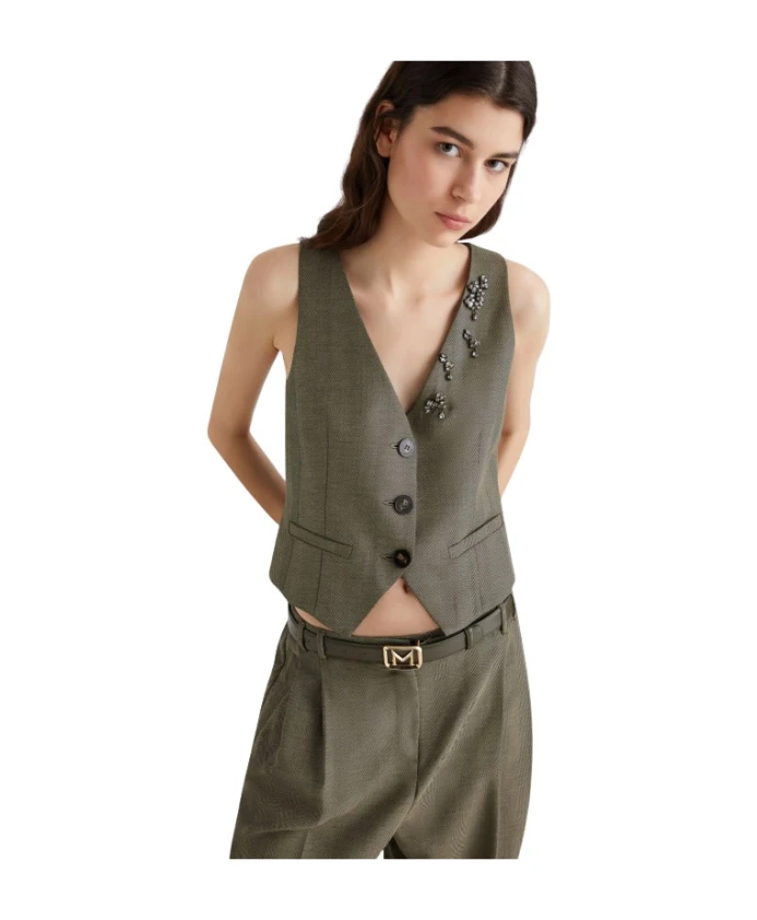 Жилет Marella Cantico - это приталенный жилет из саржи длиной до бедра, созданный для многослойного образа. V-образный вырез и декоративные пуговицы придают изысканность как деловым, так и вечерним нарядам. Ключевые особенности: Зеленый | Хаки | Натуральная шерсть | Застежка на пуговицы | Декоративные пуговицы | Имитация полупояса сзади | Боковые прорезные карманы | V-образный вырез | Саржевое переплетение «елочка» | Приталенный силуэт | Длина до бедра | Размеры и посадка: Приталенный крой | Длина до бедра | Приталенный крой | Состав и уход: Ткань: 46% натуральная шерсть, 31% полиэстер, 23% вискоза | Подкладка: 64% ацетат, 36% полиэстер | Ручная стирка в холодной воде (макс. 40°C); не отбеливать; не сушить в сушильной машине; сушить в тени; гладить в прохладном месте; профессиональная химчистка с перхлорэтиленом - щадящий процесс; не стирать влажным способом; не гладить декоративные элементы; защищайте фурнитуру во время мытья.