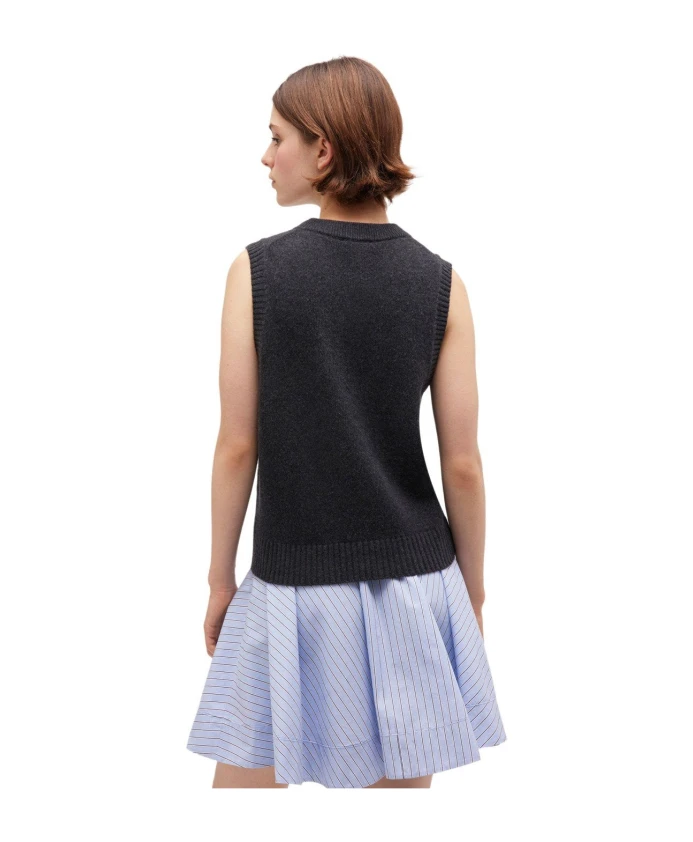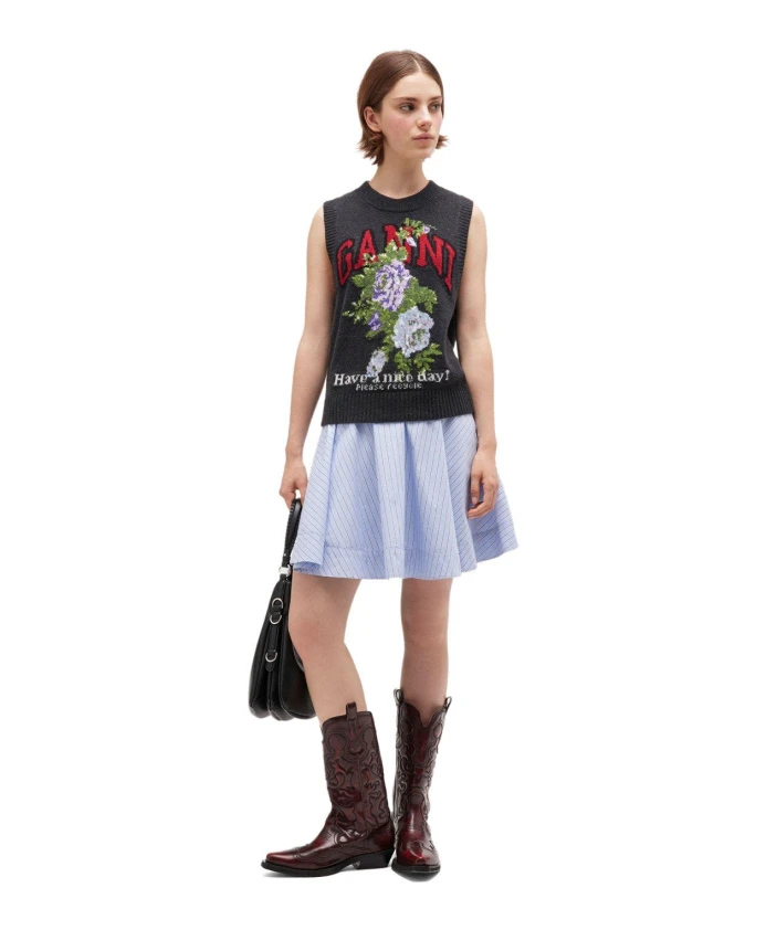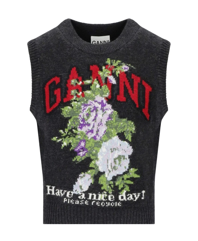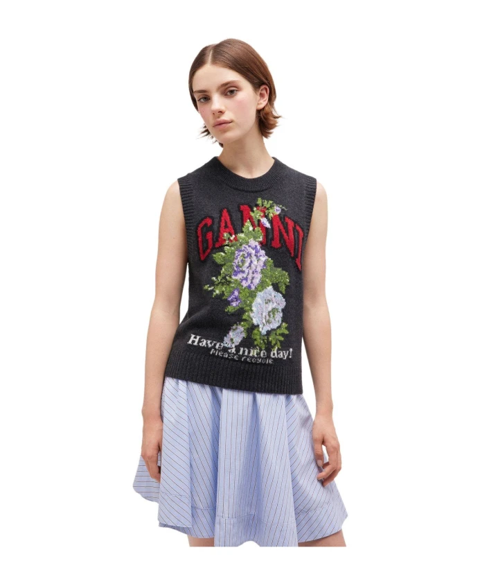Жилет Ganni Flowers Vest - это вязаный жилет из смесовой шерсти с вышитыми цветочными мотивами, логотипом бренда и фирменным слоганом «Have a nice day! Please». Он разработан как универсальный элемент многослойной одежды для повседневных и элегантных образов. Ключевые особенности: Темно-серый | Шерсть | Многослойная одежда | Вязаная конструкция | Круглый вырез | Без рукавов | Ребристые манжеты и нижний край | Вышитый логотип и цветочные мотивы | Слоган: «Have a nice day! Please» | Размер и посадка: Стандартный крой | Состав и уход: 80% шерсть | 20% полиамид | Ручная стирка в холодной воде. Не отбеливать. Не сушить в сушильной машине. Гладить при низкой температуре. Не подвергать химчистке. Сушить в горизонтальном положении. Использовать средство для шерсти. Не замачивать. Расправить во влажном состоянии.