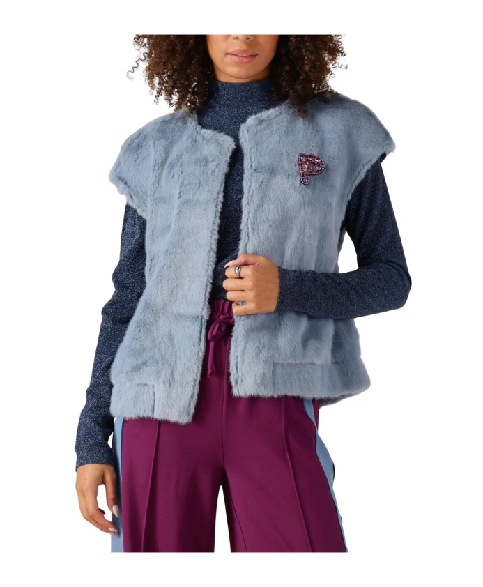 Жилет Pom Amsterdam сочетает в себе невероятно мягкий искусственный мех и декоративную брошь с блестками, создавая стильный элемент многослойного образа. Он предназначен для того, чтобы добавить тепла и текстуры как к повседневным, так и к более нарядным нарядам в прохладное время года. Ключевые особенности: Светло-голубой | Синий | Полиэстер | Мягкий на ощупь | Теплый слой | На подкладке | Легко надевается поверх другой одежды | Короткие рукава-крылышки | Текстура искусственного меха | Брошь с блестками | Фирменная подкладка с принтом | Размеры и посадка: Прямой, свободный крой | Свободный силуэт, подходит для многослойных образов | Состав и уход: Верх: 100% полиэстер | Подкладка: 62% полиэстер, 35% полиэстер, 3% эластан | Машинная стирка при 30°C. Не гладить. Не подвергать химчистке.