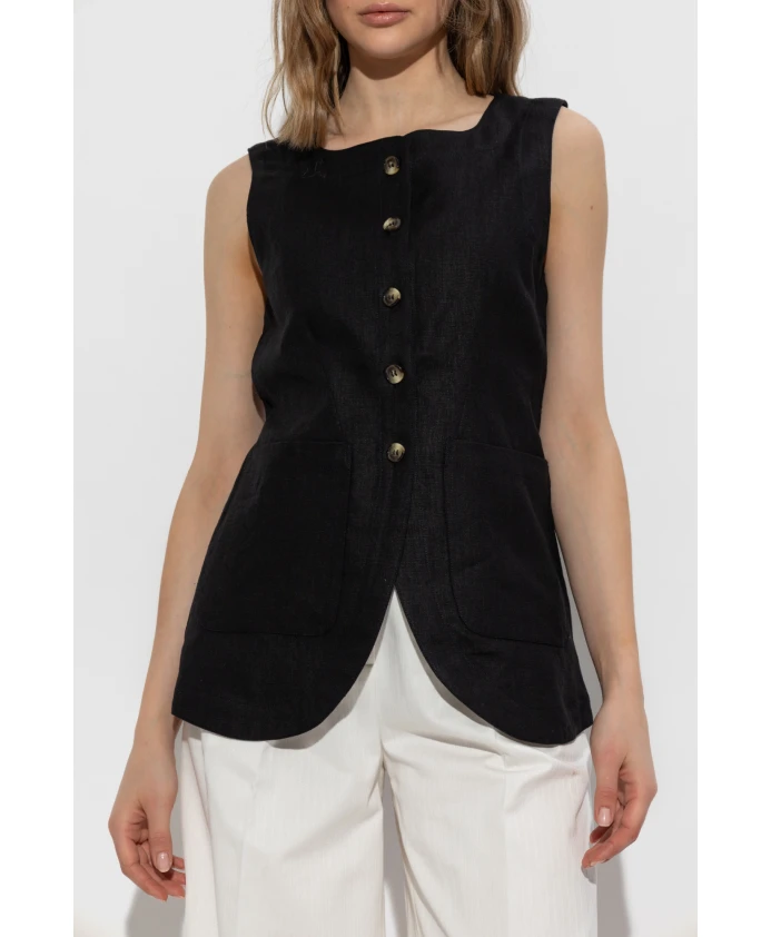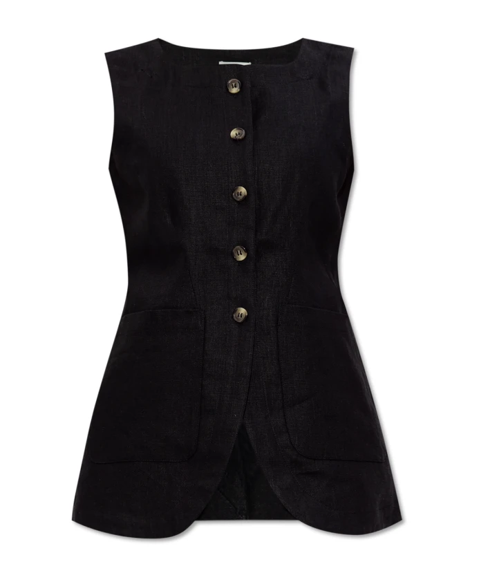 Жилет Emma от POSSE - это элегантный жилет из льна, идеально облегающий фигуру. Регулируемая лямка на спине и застежка на пуговицы спереди делают его идеальным для создания стильных многослойных образов или изысканных повседневных нарядов. Ключевые особенности: Черный | Лен | Дышащая ткань | Застежка на пуговицы спереди | Два кармана на поясе | Регулируемая лямка с пряжкой сзади | На подкладке | Высокий воротник | Без рукавов | Закругленный низ | Контрастные крупные пуговицы | Разрез по центру спины | Размеры и посадка: Рост модели: 177 см | Обхват груди: 83 см | Обхват талии: 61 см | Обхват бедер: 89 см | Модель носит размер: S | Приталенный крой | Соответствует размеру | Состав и уход: Основной материал: 100% лен | Подкладка: 100% хлопок | Только химчистка