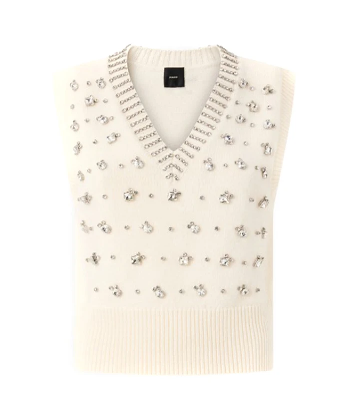 Жилет Ponziane от PINKO с V-образным вырезом, изготовленный из шерстяной смеси и украшенный различными стразами, идеально подходит как для офисных, так и для вечерних образов. Основные характеристики: Белый | Шерсть | Устойчивость к образованию катышков | Мягкий, прочный трикотаж | Без рукавов | Ребристый низ и проймы | Логотип в тон на спине | V-образный вырез | Стразы спереди | Стразы геометрической формы | Размеры и посадка: Соответствует размеру | Состав материала и уход: 80% шерсть | 20% нейлон | Стекло 100% | Сталь 100% | Ручная стирка; не отбеливать; не сушить в сушильной машине; гладить при температуре не выше 110°C; не подвергать химчистке; сушить в горизонтальном положении; не гладить украшения.