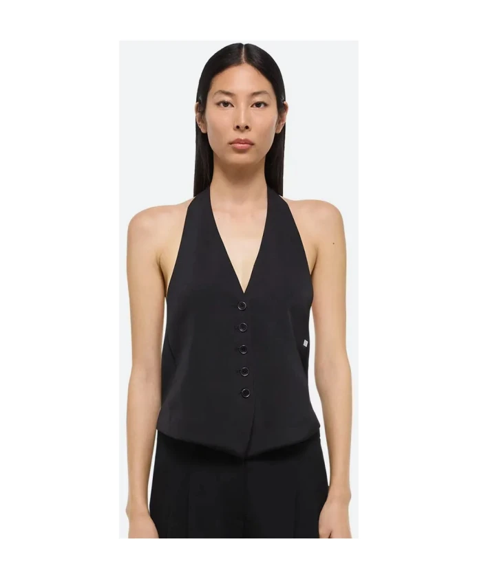 Жилет Helmut Lang Halter Vest - это приталенный жилет с глубоким V-образным вырезом и открытой завязкой на спине, созданный для структурированного многослойного образа и вечерних нарядов. Основные характеристики: Черный | Полиэстер | Застежка на пуговицы спереди | Пояс | Боковые карманы с металлическим логотипом | Воротник-халтер | Глубокий V-образный вырез | Открытая спина | Размеры и посадка: Соответствует стандартному размеру. | Состав ткани и уход: 100% полиэстер | Не стирать, не отбеливать, не сушить в сушильной машине, при необходимости гладить утюгом при низкой температуре; химчистка с использованием любого растворителя, кроме трихлорэтилена.