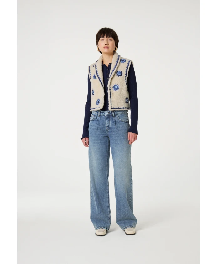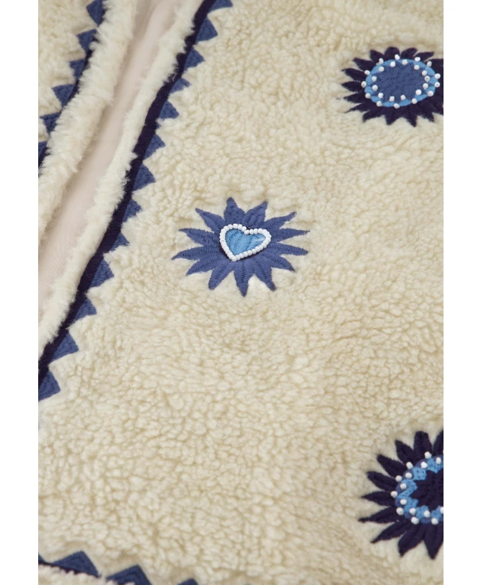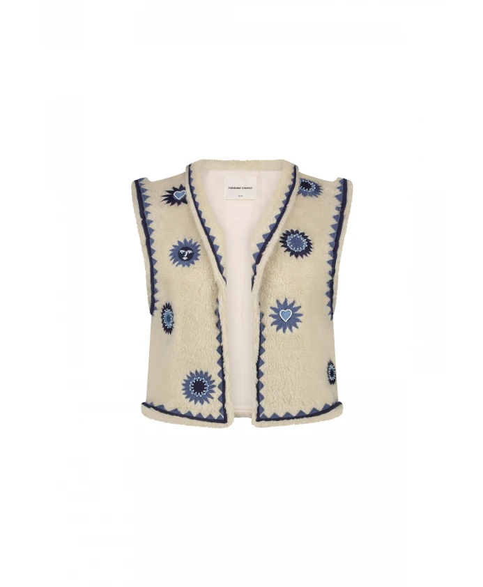 Жилет Sunny от Fabienne Chapot станет стильным дополнением вашего гардероба. Он выполнен в кремово-белом цвете с вышивкой в виде синих солнечных лучей и имеет подкладку из овчины для тепла и текстуры. Изготовленный из 100% хлопка, он идеально подходит для многослойности и добавления женственности любому образу. Ключевые характеристики: Бежевый | Синий | 100% хлопок | Вышивка в виде синих солнечных лучей | Подкладка из овчины | Размер и посадка: стандартный | Состав и уход: 100% хлопок | Машинная стирка в холодной воде, сушка в барабане при низкой температуре