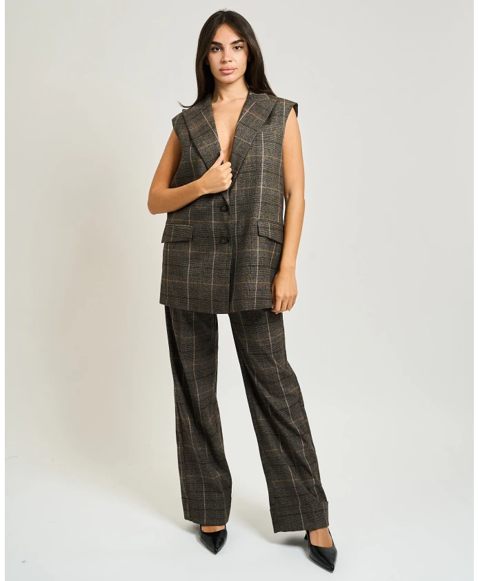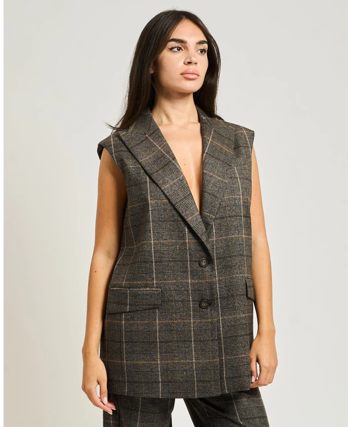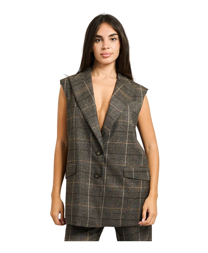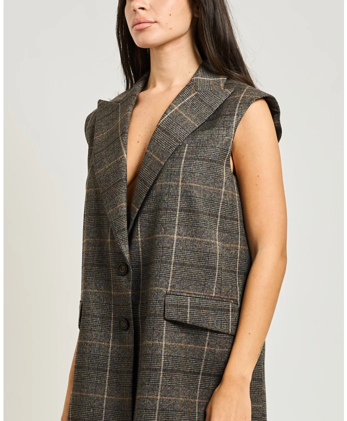 Длинный жилет Manila Grace из клетчатой ткани, скроенный по фигуре, создан как длинный, свободный элемент многослойного образа. Он имеет заостренные лацканы и аккуратную застежку на две пуговицы спереди для элегантного и универсального вида. Ключевые особенности: Разноцветный | Полиэстер | Застежка на две пуговицы спереди | Накладные карманы | Клетчатый узор | Заостренные лацканы | Приталенный крой | Длинный силуэт | Размеры и посадка: Свободный крой | Модель носит размер 40IT, рост 1,65 м | Состав и уход: 64% полиэстер | 34% вискоза | 2% эластан