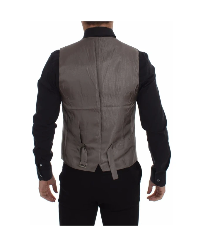 Жилет Dolce & Gabbana из эластичной хлопковой ткани имеет приталенный однобортный силуэт, застежку на все пуговицы и регулируемую застежку на поясе сзади для изысканной, индивидуальной посадки. Изготовленный в Италии из смеси хлопка и эластичной ткани, он дополнит как формальные, так и элегантные повседневные ансамбли. Ключевые особенности: Бежевый | Хлопок | Эластичная ткань | Регулируемая застежка на поясе сзади | Застежка на все пуговицы | Однобортный | Деталь с логотипом | Состав и уход: 65% хлопок | 2% эластан | 33% полиамид