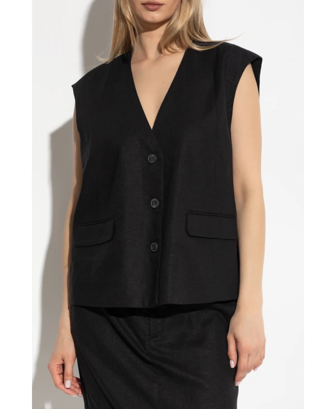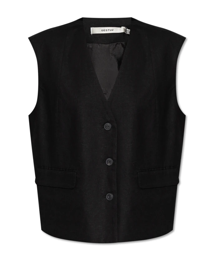 Представляем жилет Gzizza от Gestuz - идеальное сочетание классического стиля и современного дизайна. Этот черный жилет изготовлен из высококачественных материалов, что делает его идеальным выбором для тех, кто ценит элегантность и функциональность. Ключевые особенности: Черный | Вискоза | Лен | Эластан | Неброские пуговицы | Два накладных кармана | Слегка закругленные плечи | Глубокий V-образный вырез | Размеры и посадка: Стандартный крой | Состав и уход: Вискоза | Лен | Эластан | Только химчистка