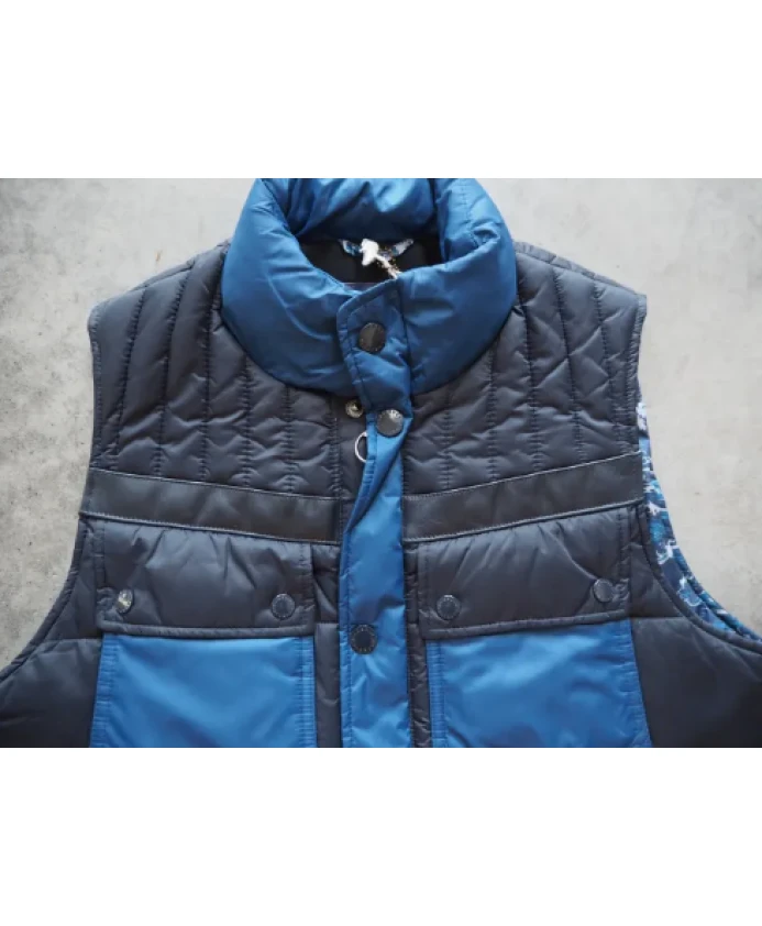 Откройте для себя темно-синий жилет Barbour x White Mountaineering 'Raekawa' - результат сотрудничества, в котором классические модели приобретают новое звучание. Этот обтекаемый жилет, изготовленный из стеганой ткани, отличается уникальным сочетанием узоров. Застежка на молнию, ветрозащитная планка на кнопках, четыре кармана, кожаная отделка и регулируемый низ делают его одновременно стильным и практичным. Инструкция по уходу: Машинная стирка. Максимальная температура 30°C. Стирать отдельно.