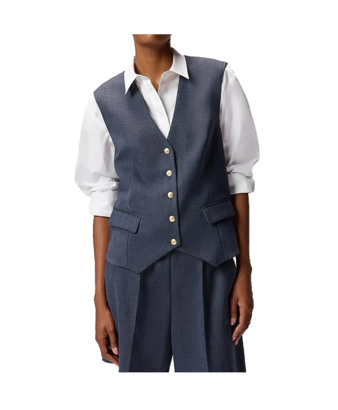 Жилет PINKO Ketchup сочетает в себе фактурную эластичную шерстяную ткань с V-образным вырезом и застежкой на металлические пуговицы, создавая изысканные многослойные образы и элегантные комплекты. Ключевые особенности: Синий | Полиэстер | Застежка на металлические пуговицы | Передние накладные карманы | Регулируемая застежка сзади | V-образный вырез | Без рукавов | Состав и уход: Внешняя ткань: 55% полиэстер, 44% шерсть, 1% эластан | Подкладка: 67% ацетат, 33% полиэстер