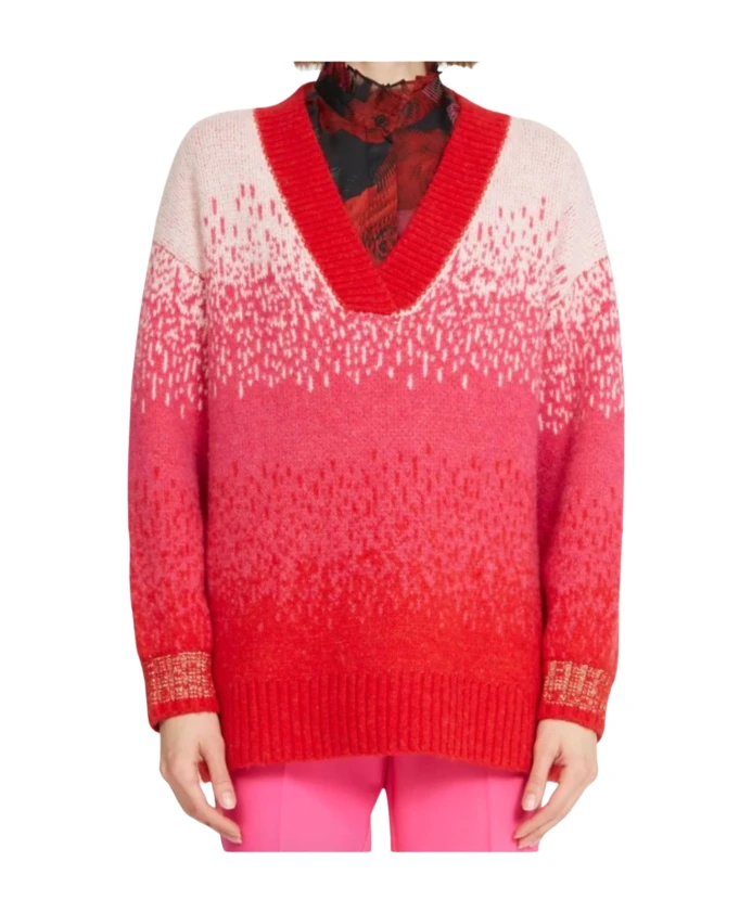 Сильвиан Хич представляет вязаный жилет - стильную вещь с V-образным вырезом и декоративным градиентным узором, идеально подходящую для придания шика любому образу. Ключевые особенности: Цвет вишни | Фуксия | Красный | Полиэстер | V-образный вырез | Длинные рукава | Декоративный градиентный узор | Размер и посадка: Свободный крой | Состав и уход: 78% полиэстер | 13% акрил | Машинная стирка в холодной воде, сушка в барабане при низкой температуре.