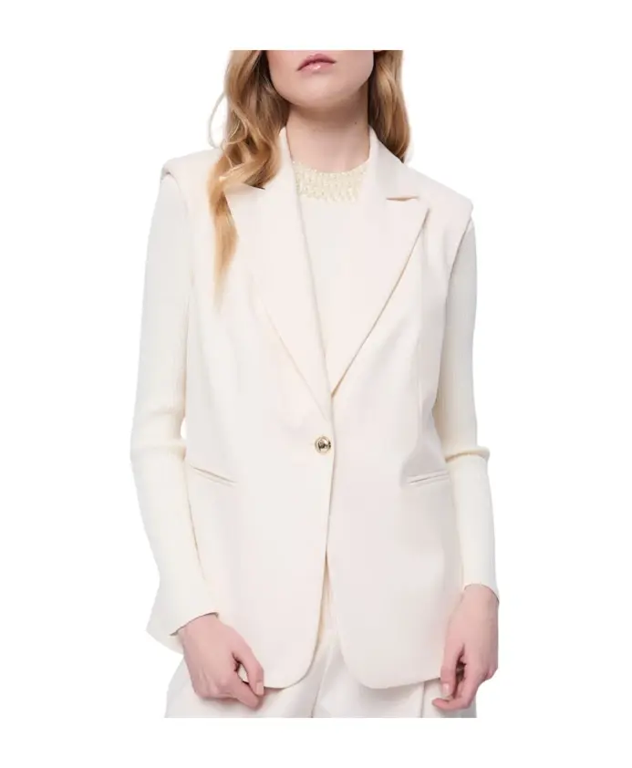 Жилет Gaudi приталенного силуэта с отложным лацканом и золотой пуговицей. Созданный для придания изысканного завершающего штриха образу, он сочетает в себе элегантный крой и комфортную эластичность для удобства ношения. Ключевые особенности: Белый | Одна звезда | Смесь вискозы | Застежка на пуговицы | Отложной лацкан | Приталенный крой | Золотая пуговица | Размеры и посадка: Приталенный крой | Состав ткани и уход: Эластичная смесь вискозы