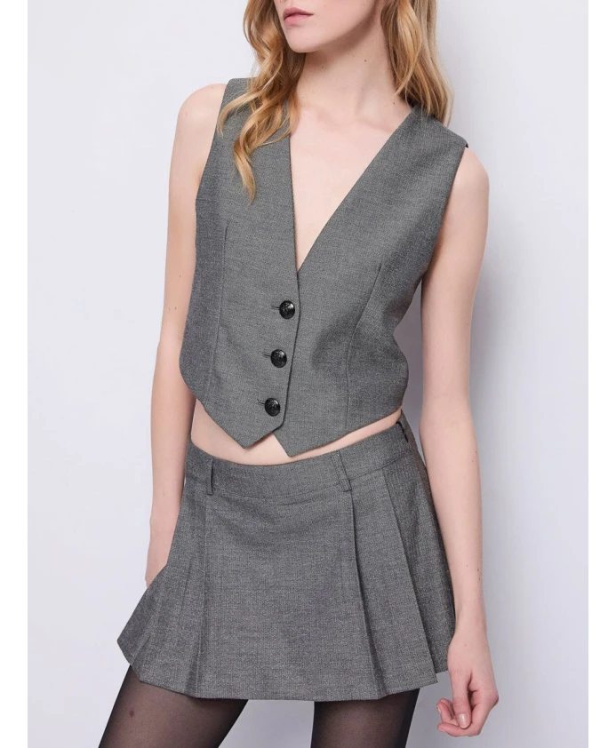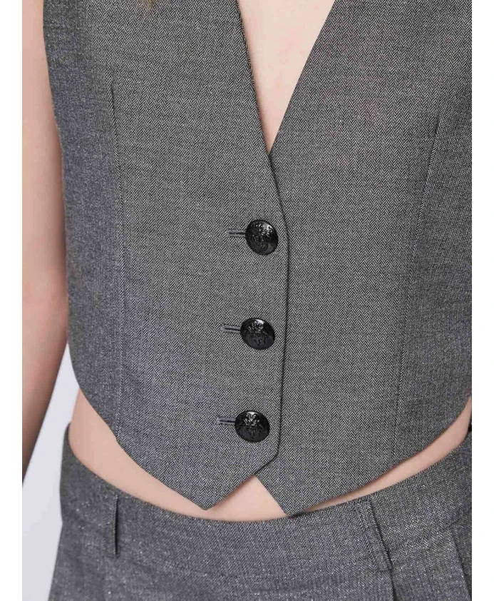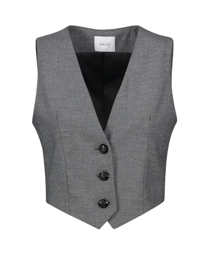 Жилет Gaudì приталенного кроя - это изысканный элемент многослойного образа, сочетающий в себе текстуру «шеврон» и V-образный вырез для создания элегантного и универсального стиля. Ключевые особенности: Серый | Серый | Черный | Люрекс | Вискоза | Эластичная ткань | Застежка на пуговицы | V-образный вырез | Узор «шеврон» | Приталенный силуэт | Без рукавов | Размеры и посадка: Приталенный | Состав и уход: Эластичная вискозная смесь
